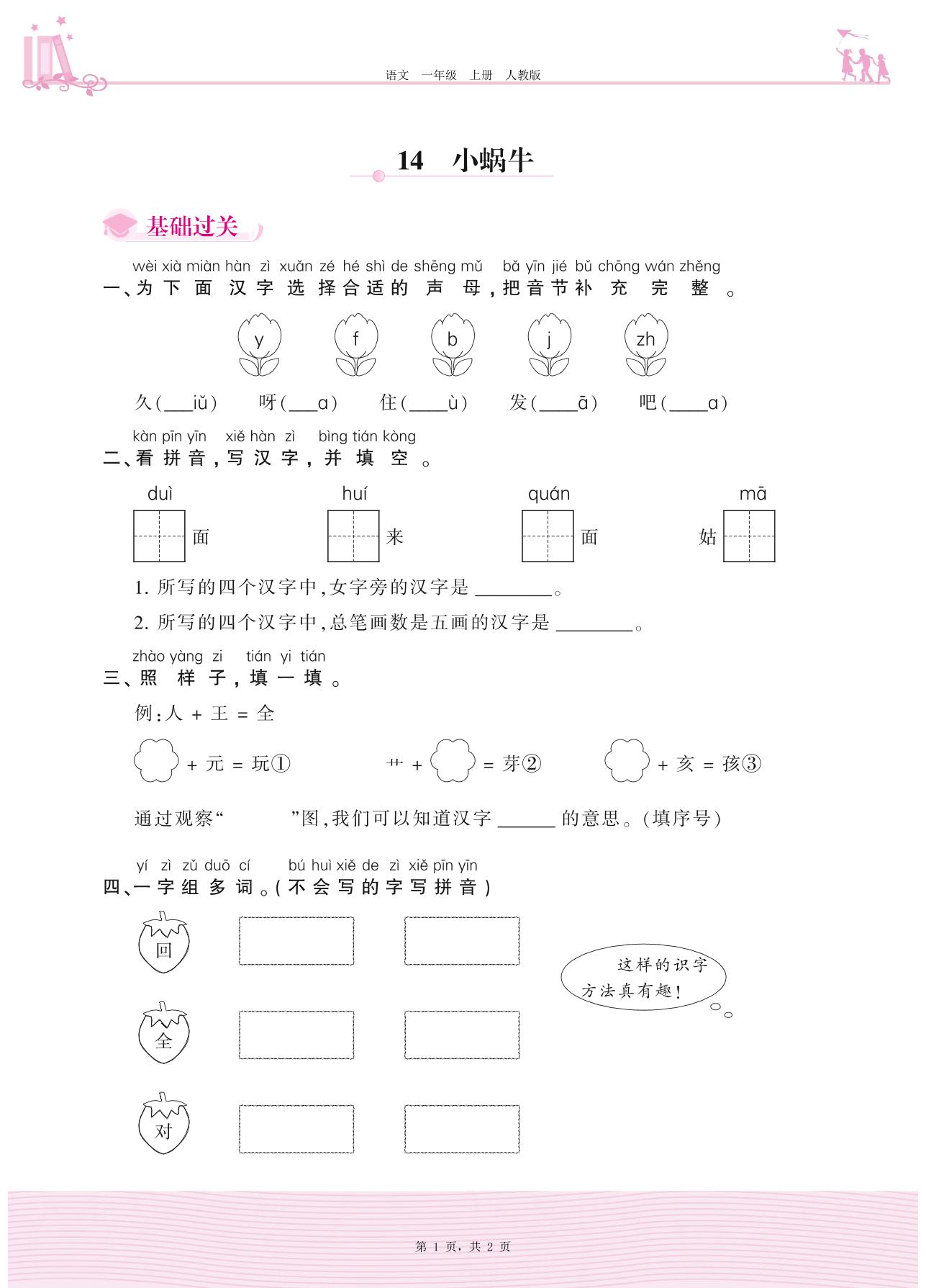 2020上册一年级语文人教版 第八单元 课文——14 小蜗牛