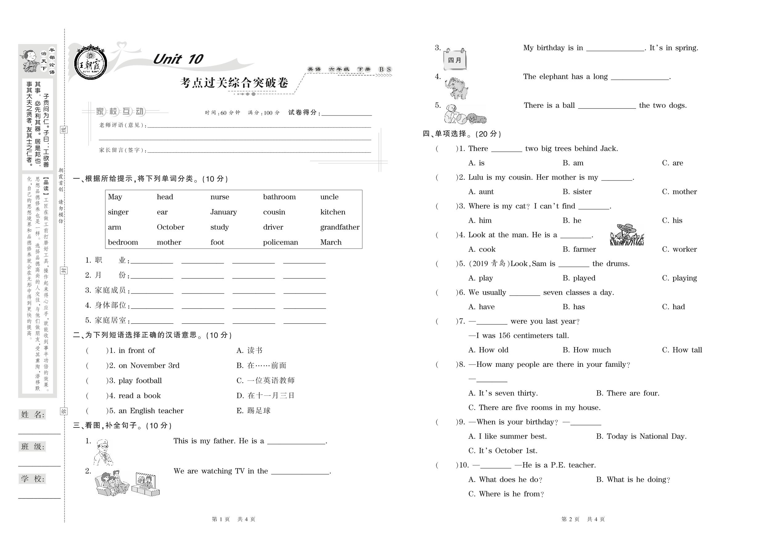 2021下册六年级英语北师版 Unit 10 考点过关综合突破卷