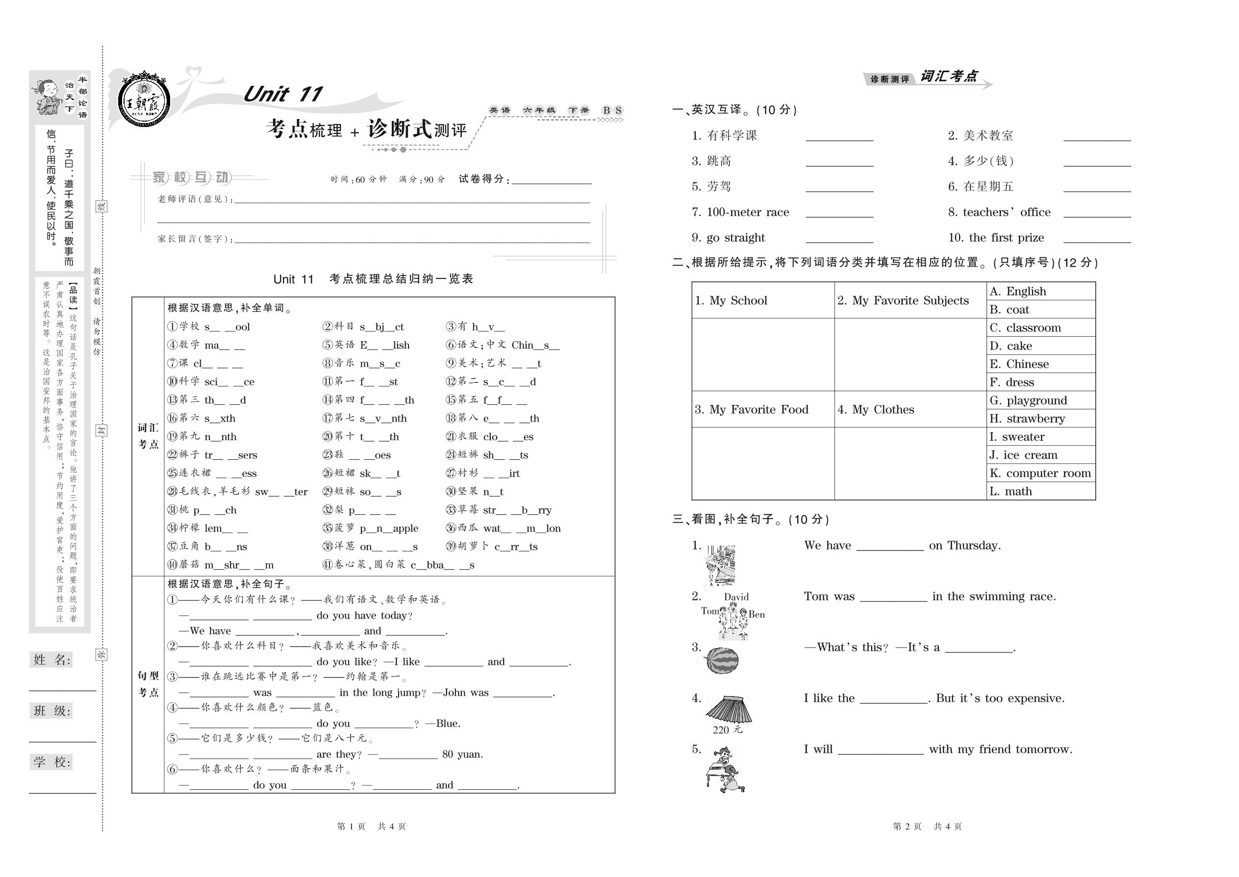 2021下册六年级英语北师版 Unit 11 考点梳理+诊断式测评