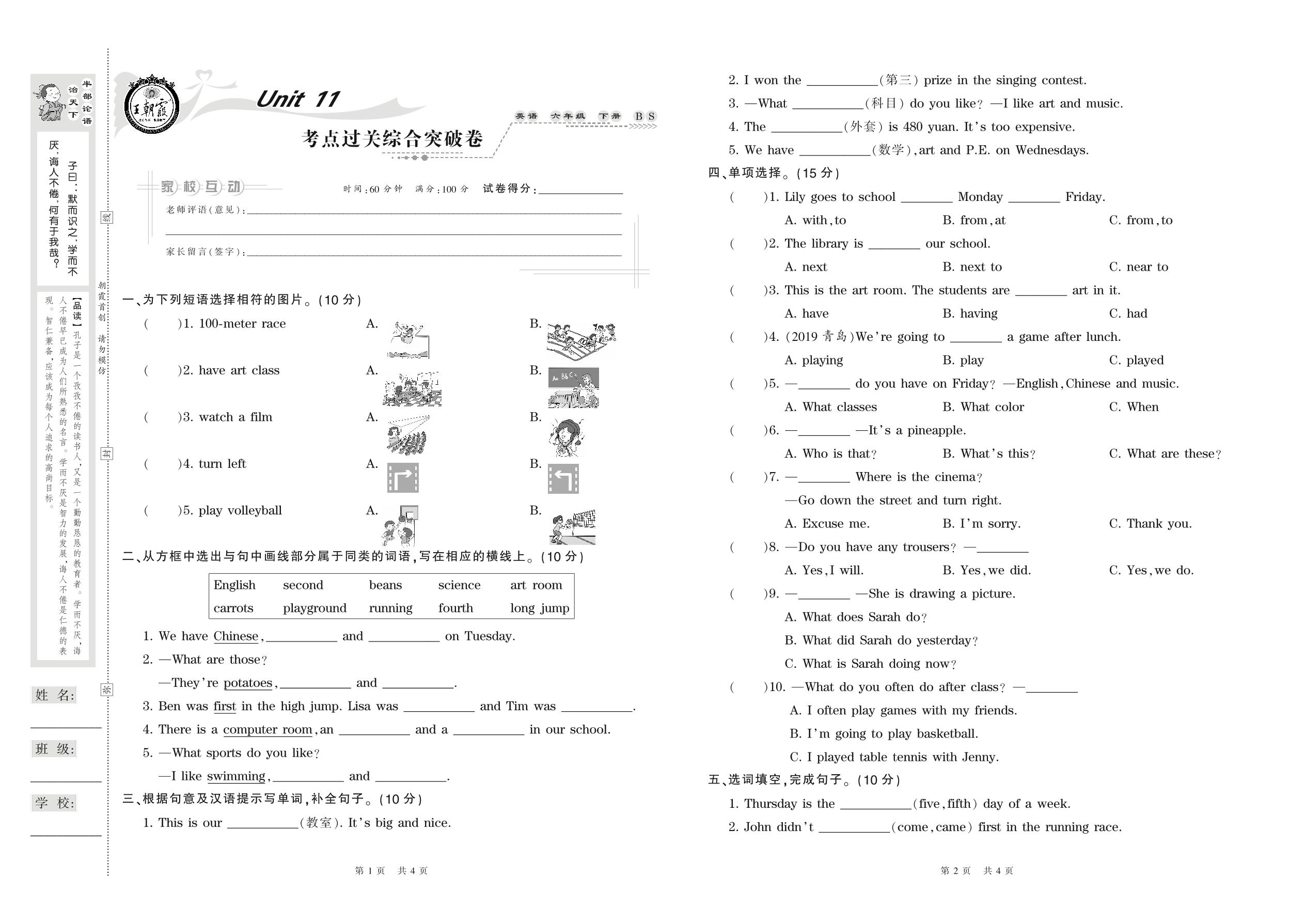 2021下册六年级英语北师版 Unit 11 考点过关综合突破卷