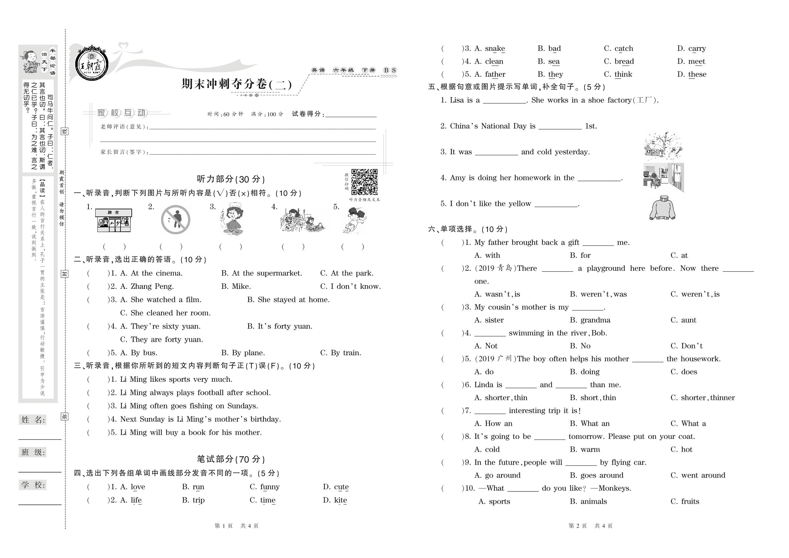 2021下册六年级英语北师版 期末冲刺夺分卷(二)