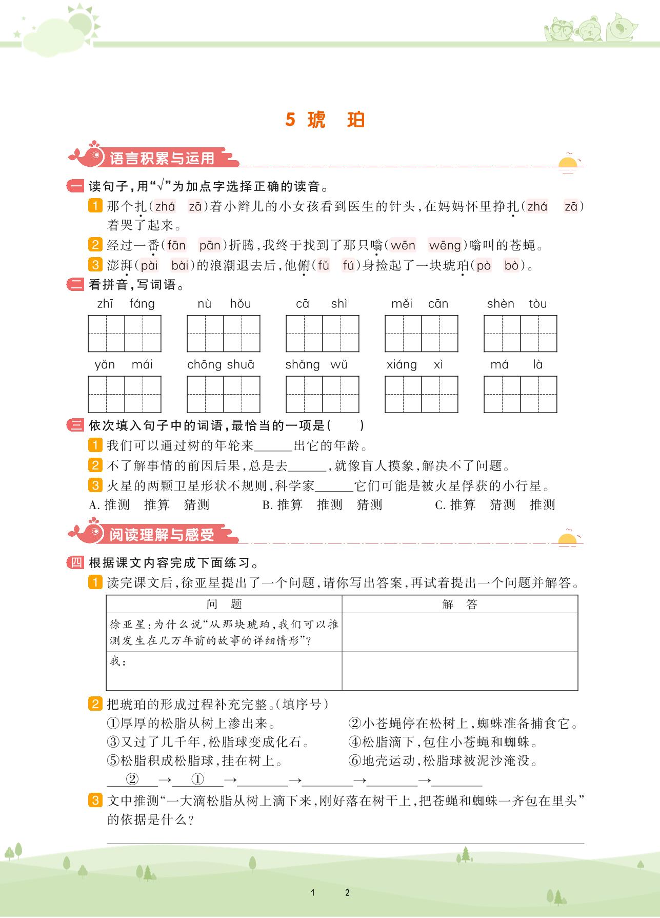 2021下册四年级语文人教版 第二单元——5 琥珀
