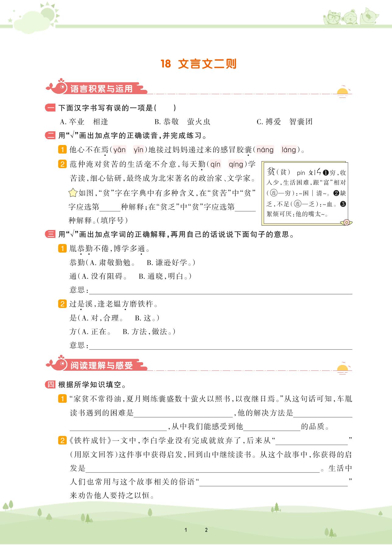 2021下册四年级语文人教版 第六单元——18 文言文二则
