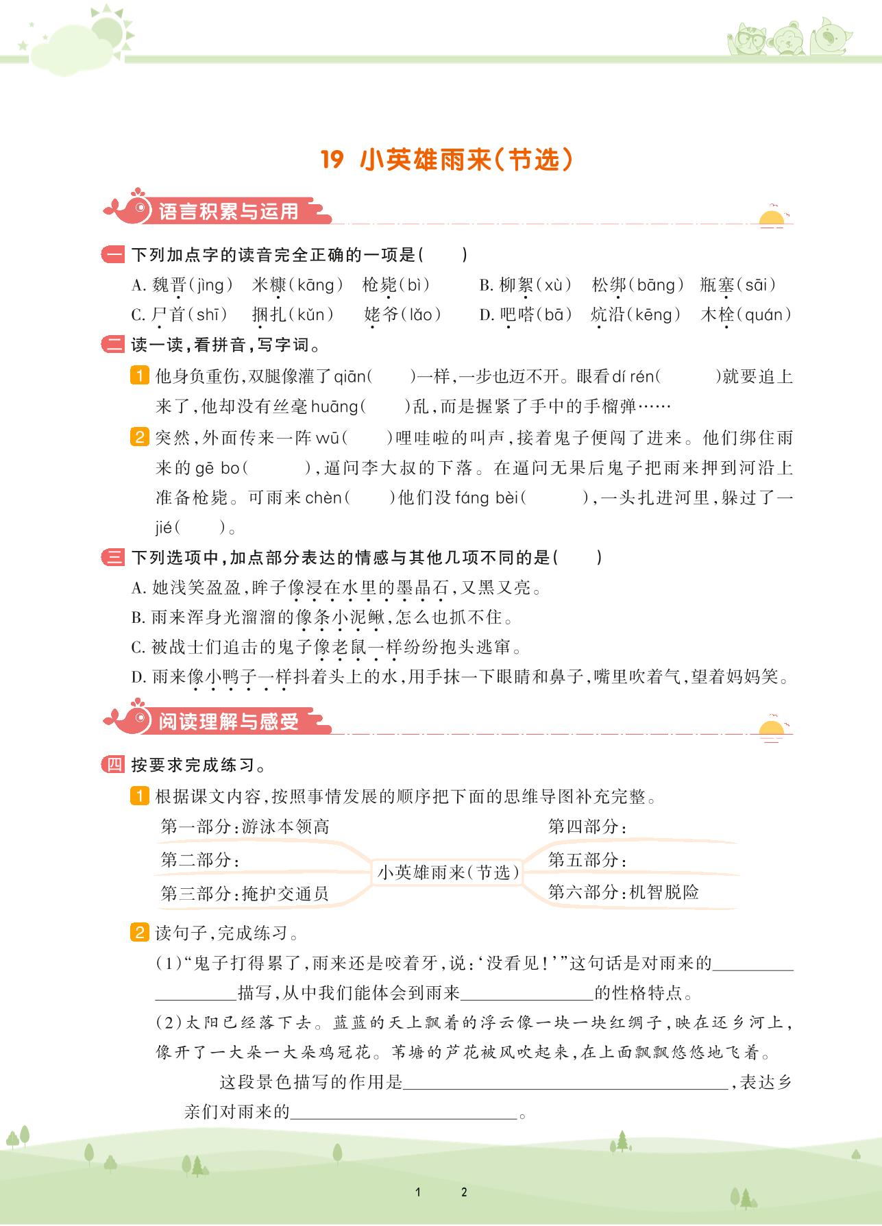2021下册四年级语文人教版 第六单元——19 小英雄雨来(节选)
