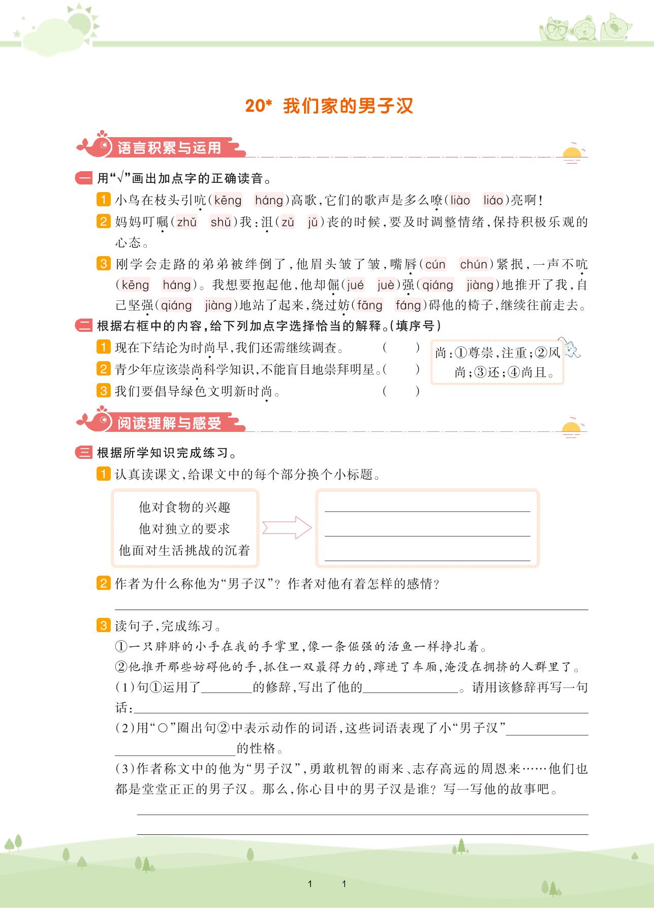 2021下册四年级语文人教版 第六单元——20 我们家的男子汉