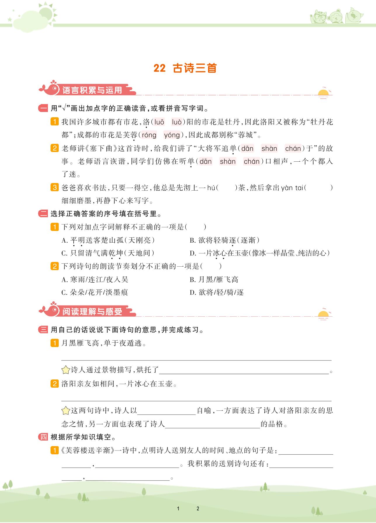 2021下册四年级语文人教版 第七单元——22 古诗三首