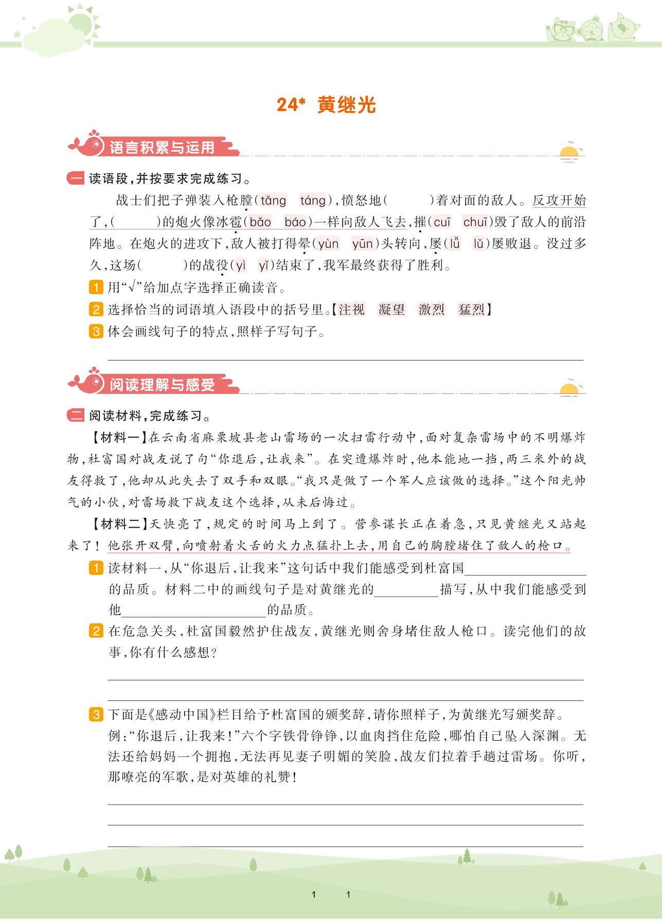 2021下册四年级语文人教版 第七单元——24 黄继光