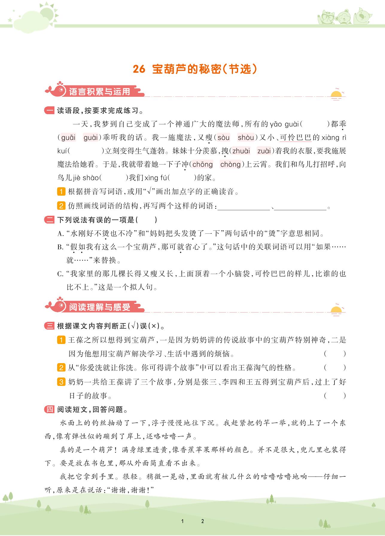 2021下册四年级语文人教版 第八单元——26 宝葫芦的秘密(节选)