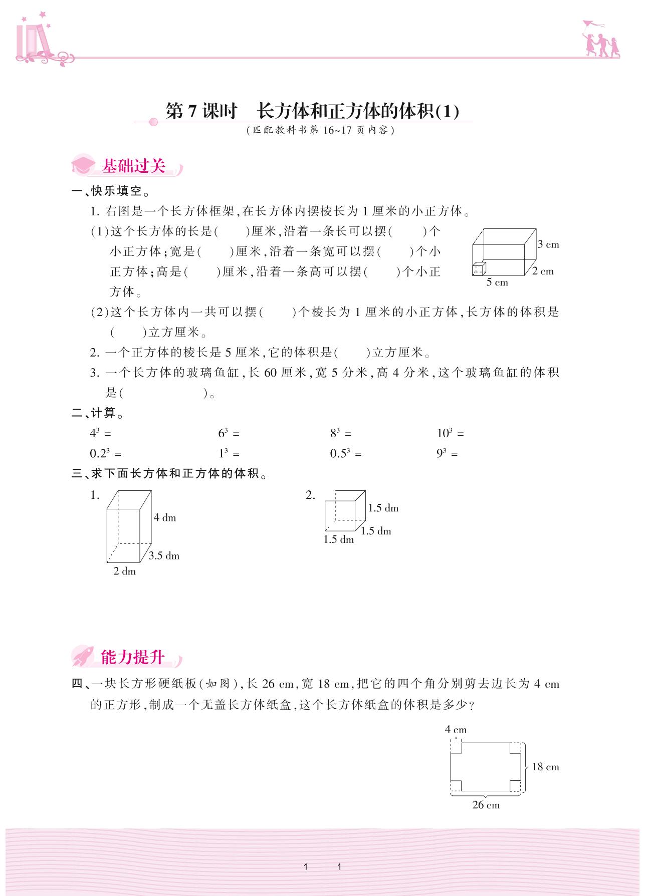 2020上册六年级数学苏教版 一 长方体和正方体——第7课时 长方体和正方体的体积(1)