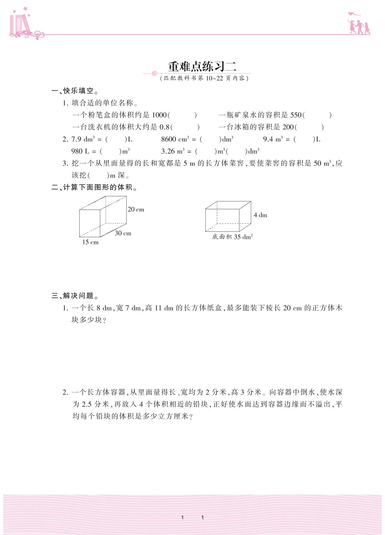 2020上册六年级数学苏教版 一 长方体和正方体——重难点练习二