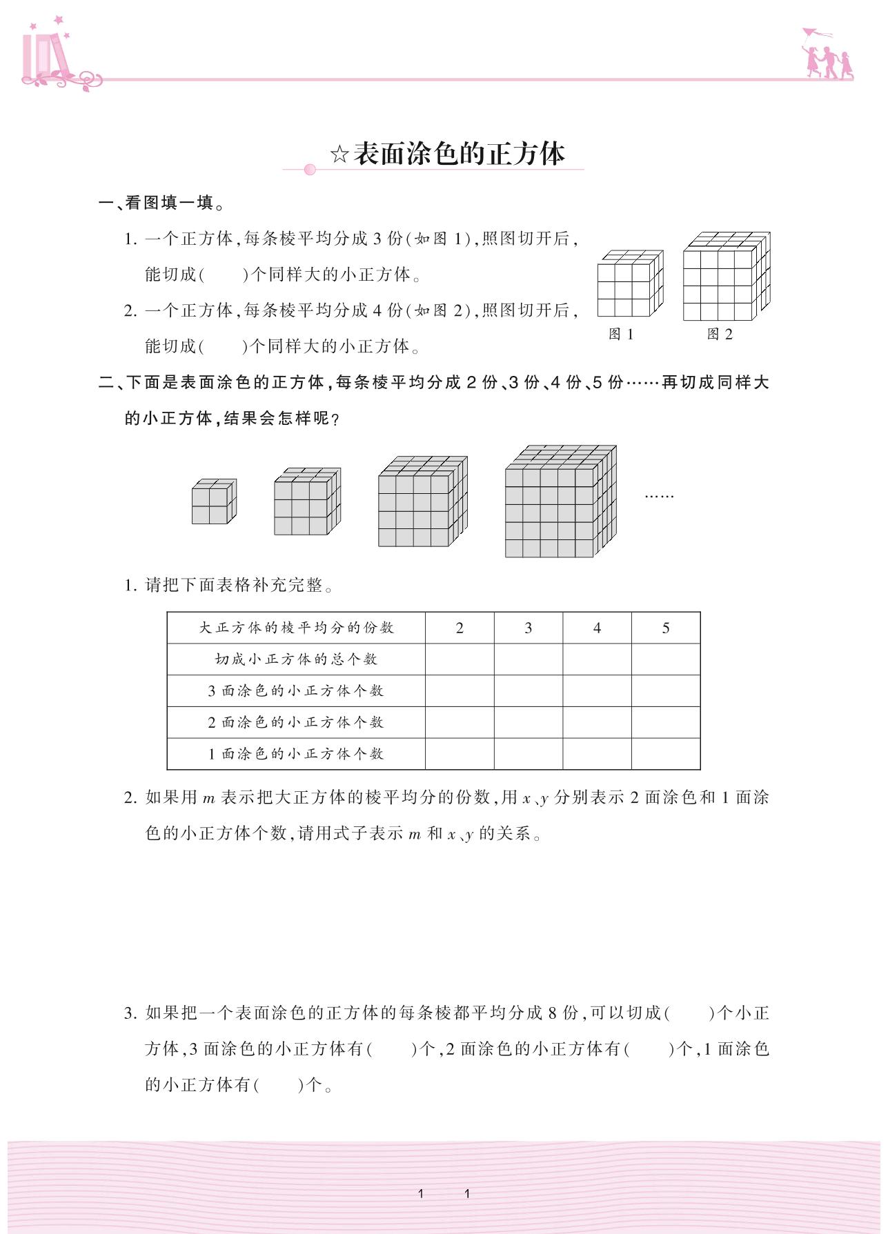 2020上册六年级数学苏教版 一 长方体和正方体——☆表面涂色的正方体