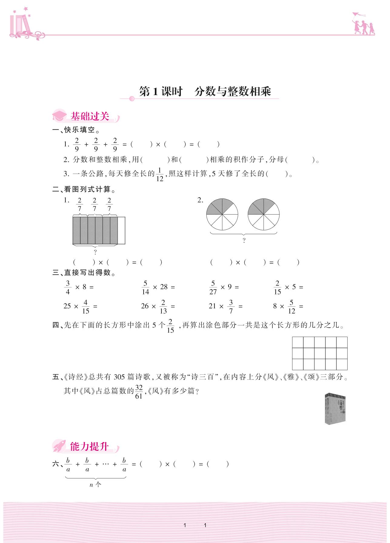 2020上册六年级数学苏教版 二 分数乘法——第1课时 分数与整数相乘