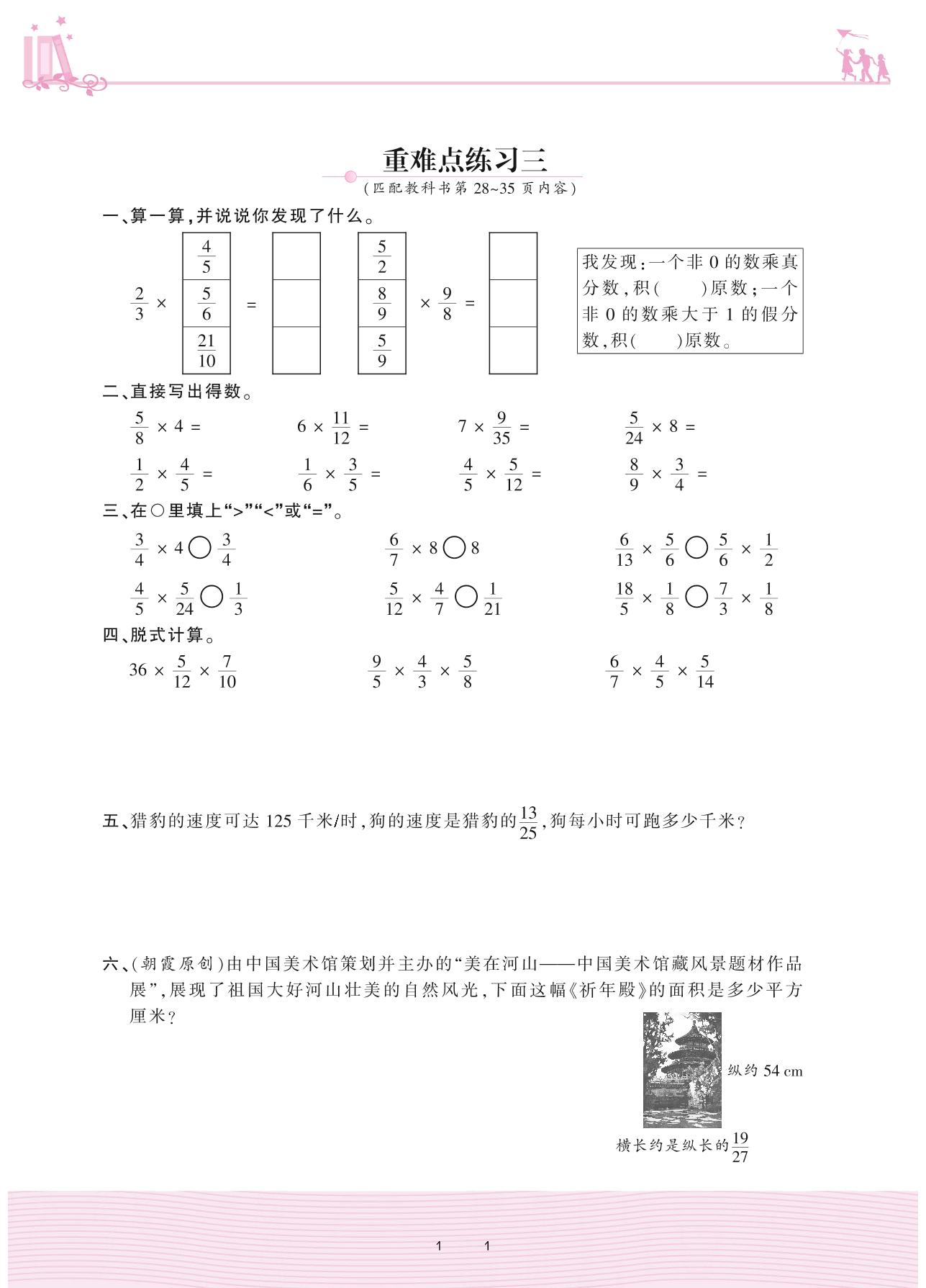 2020上册六年级数学苏教版 二 分数乘法——重难点练习三