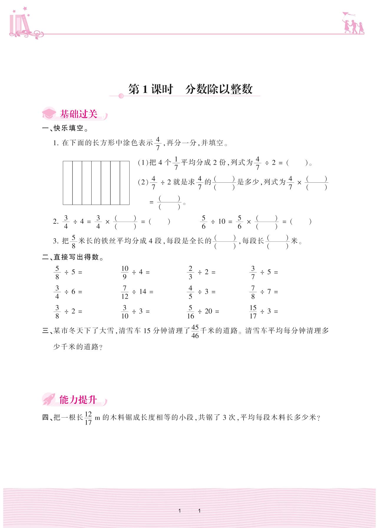 2020上册六年级数学苏教版 三 分数除法——第1课时 分数除以整数
