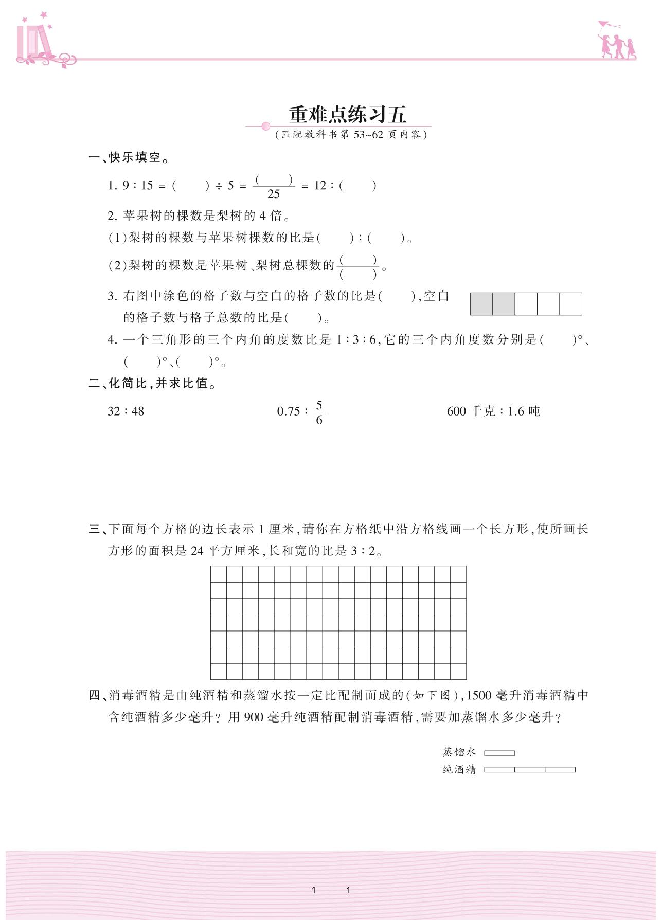 2020上册六年级数学苏教版 三 分数除法——重难点练习五
