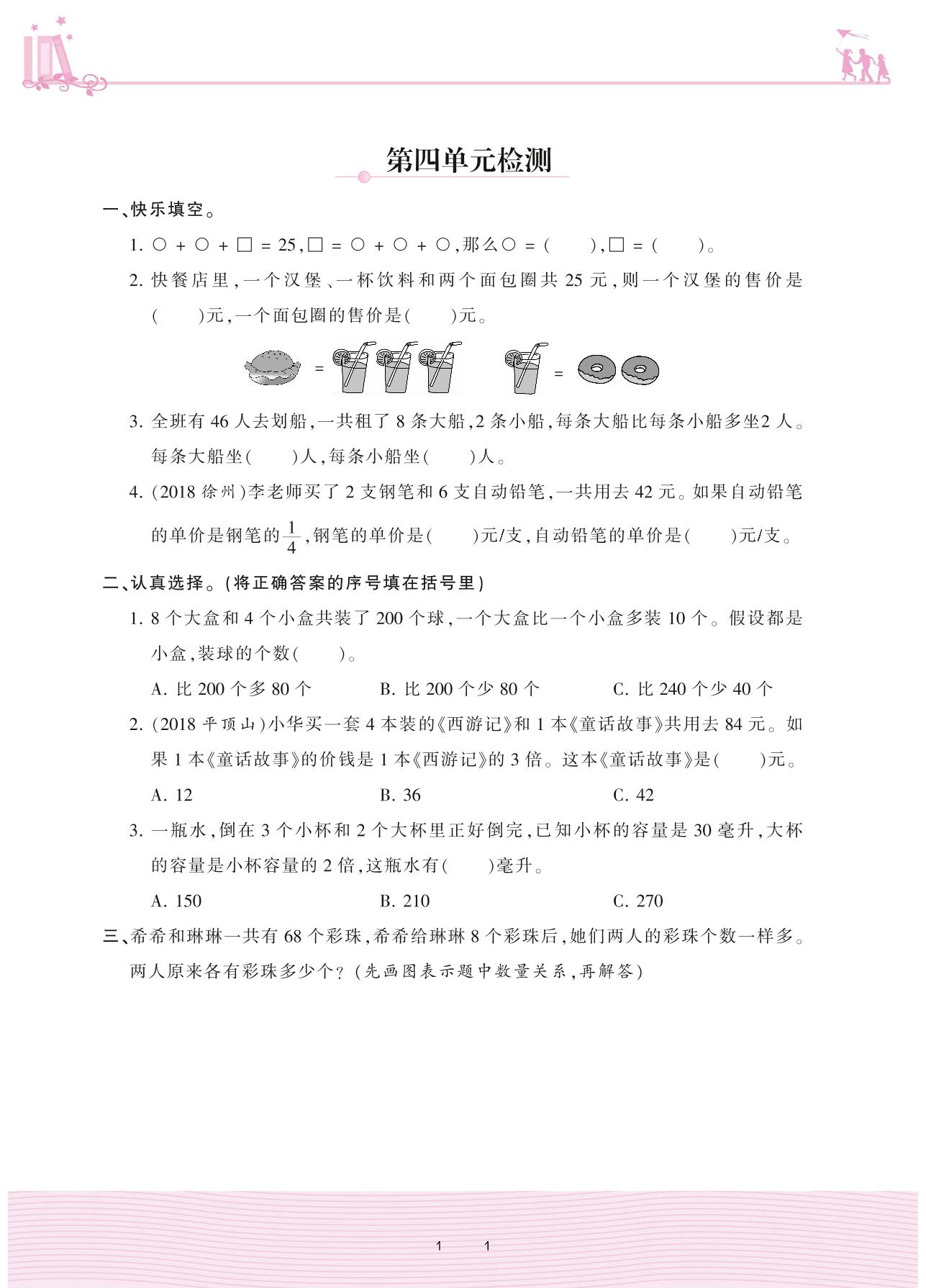 2020上册六年级数学苏教版 第四单元检测