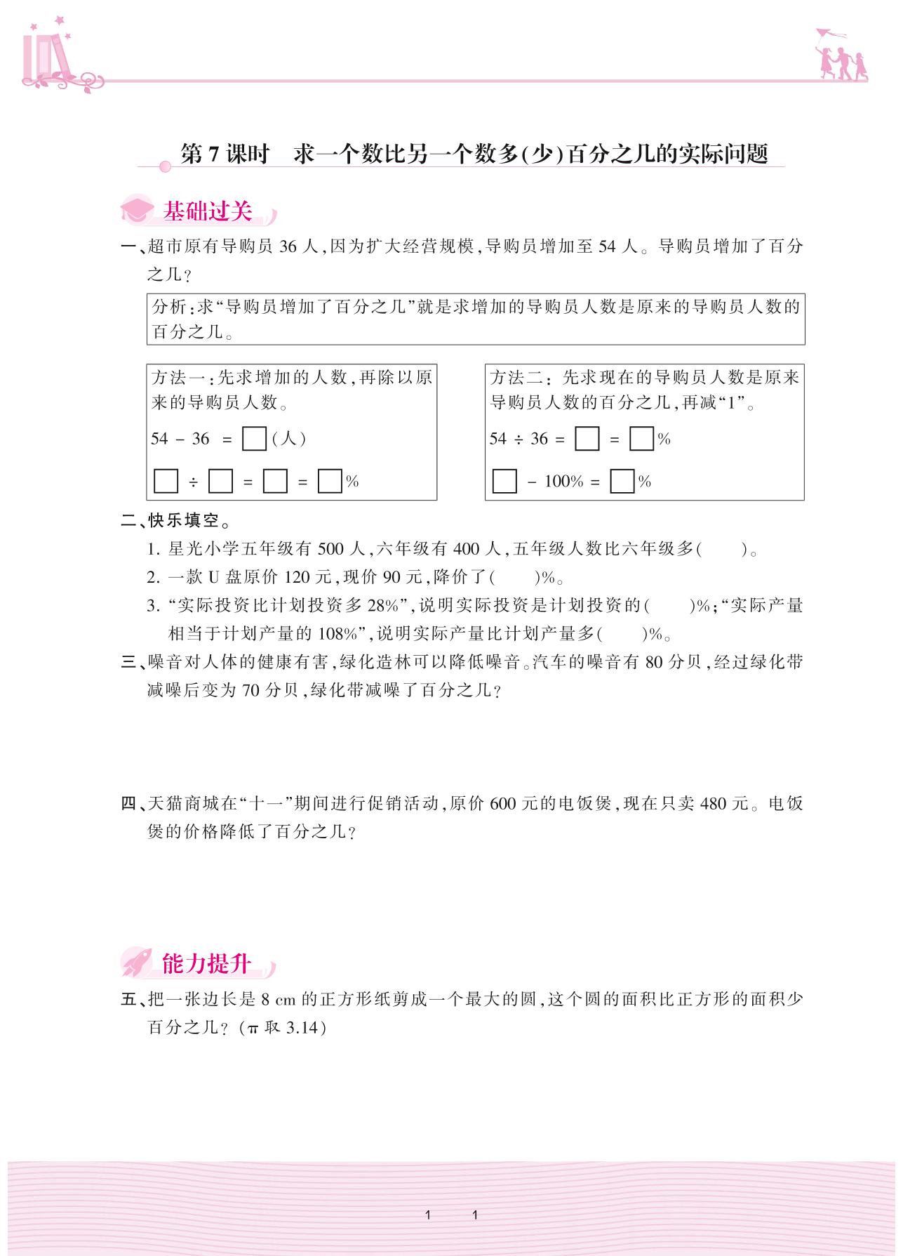 2020上册六年级数学苏教版 六 百分数——第7课时 求一个数比另一个数多(少)百分之几的实际问题