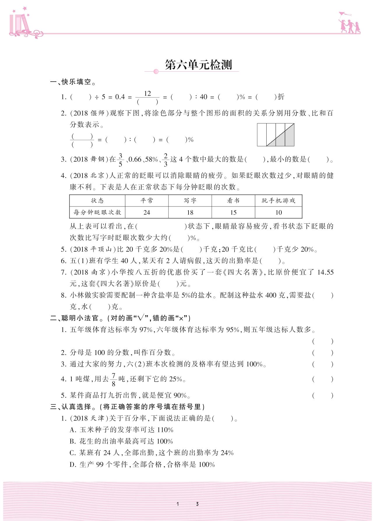 六年级数学苏教版上册单元卷