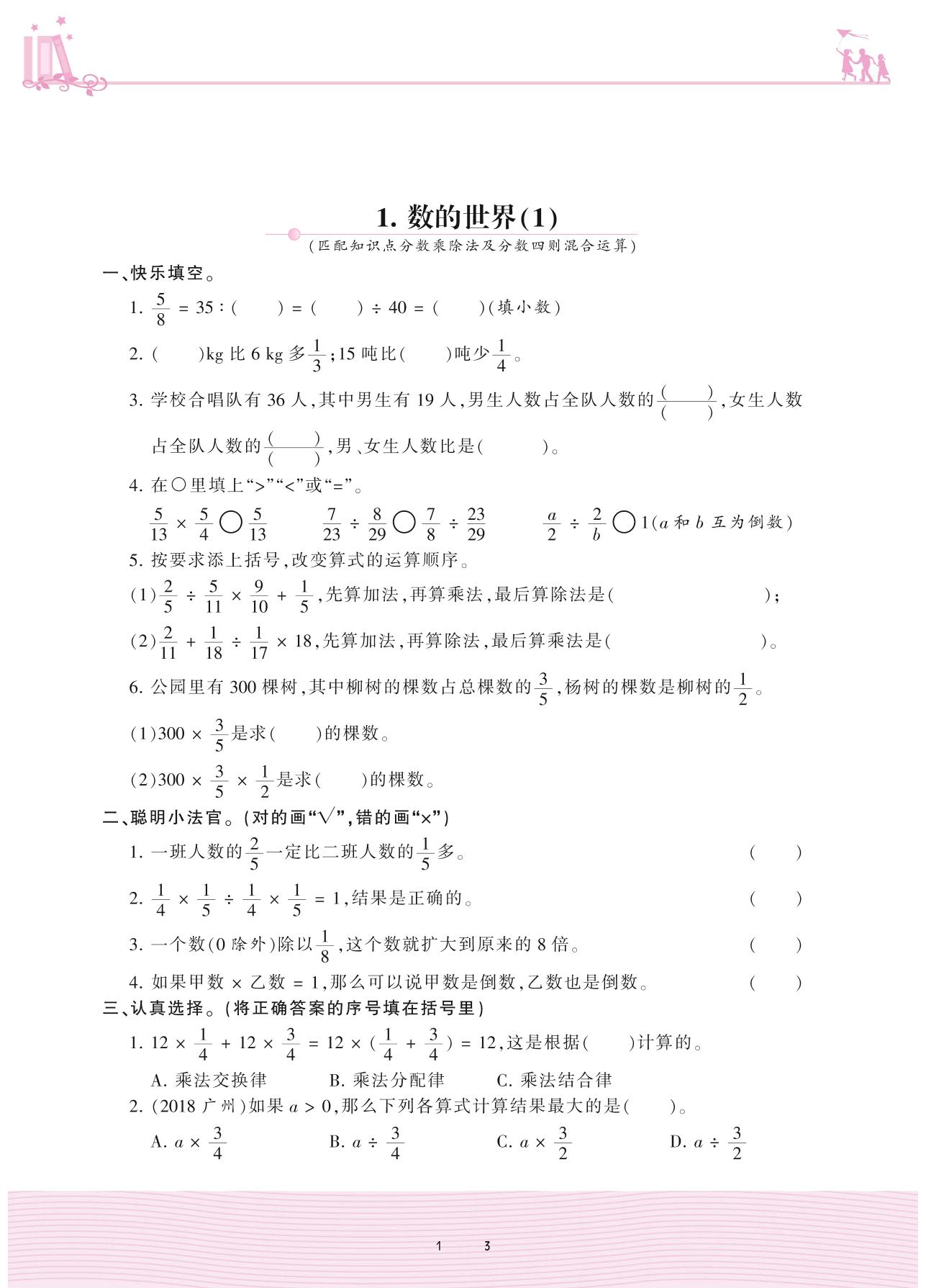 2020上册六年级数学苏教版 七 整理与复习——1. 数的世界(1)