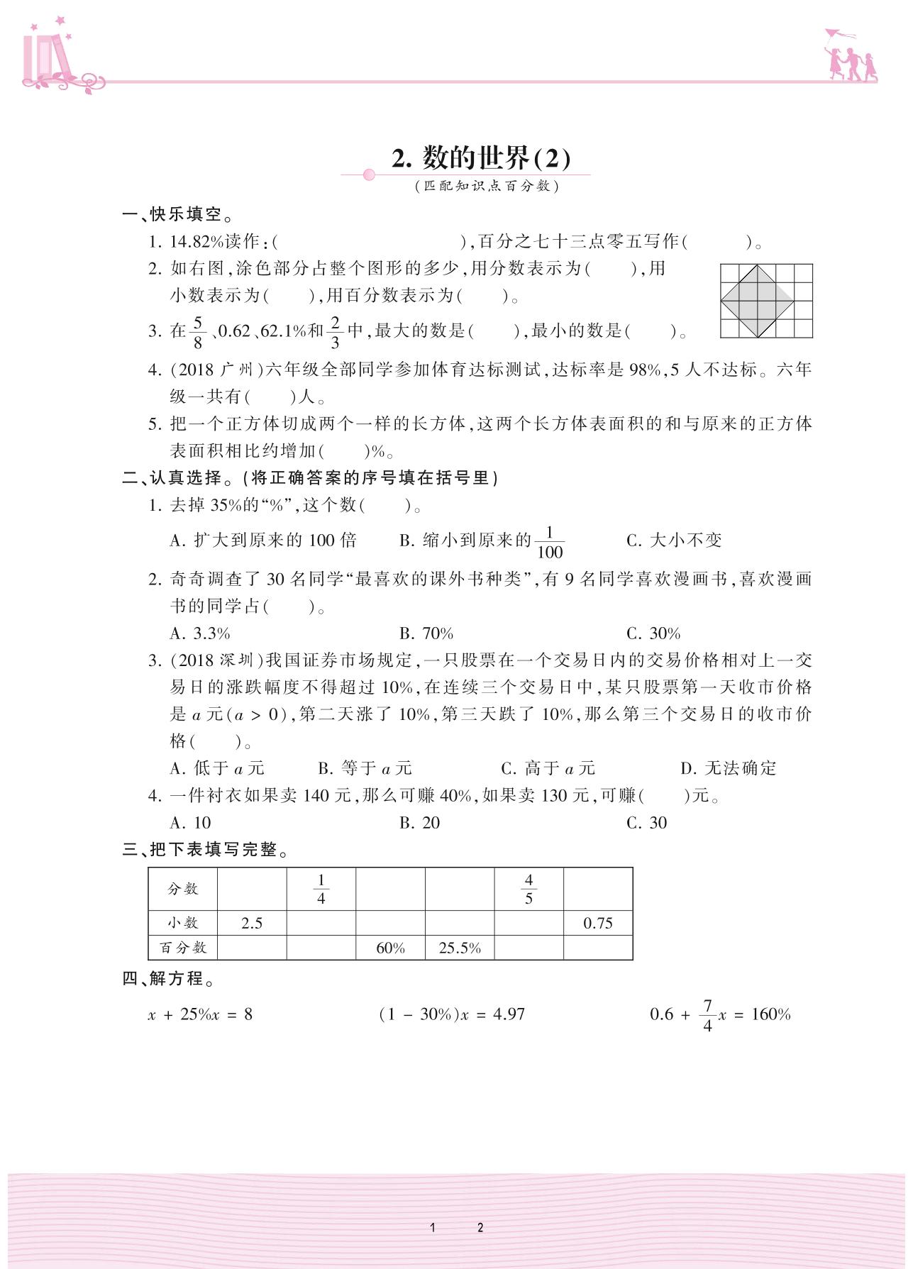 2020上册六年级数学苏教版 七 整理与复习——2. 数的世界(2)