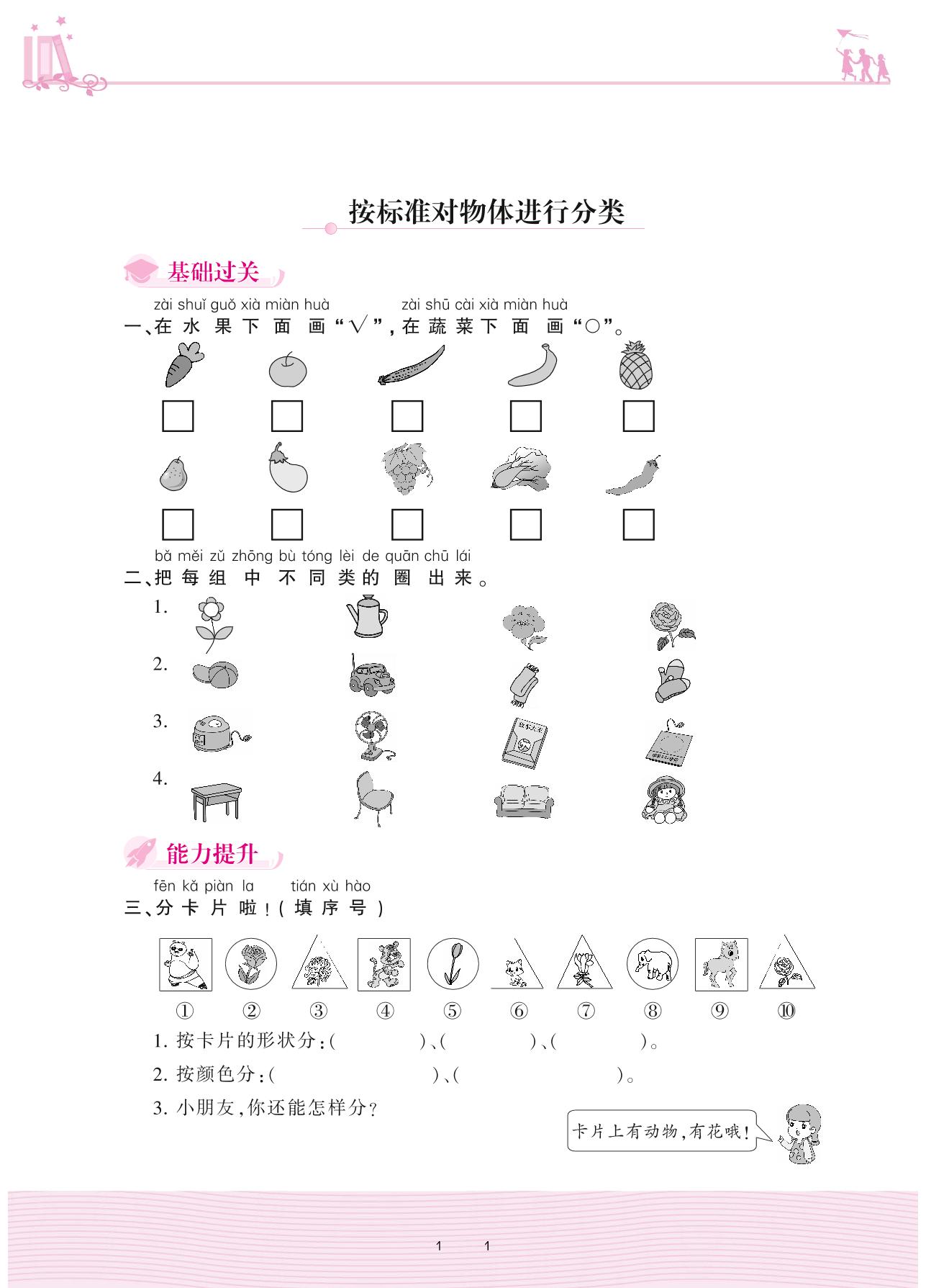 2020上册一年级数学苏教版 三 分一分——按标准对物体进行分类