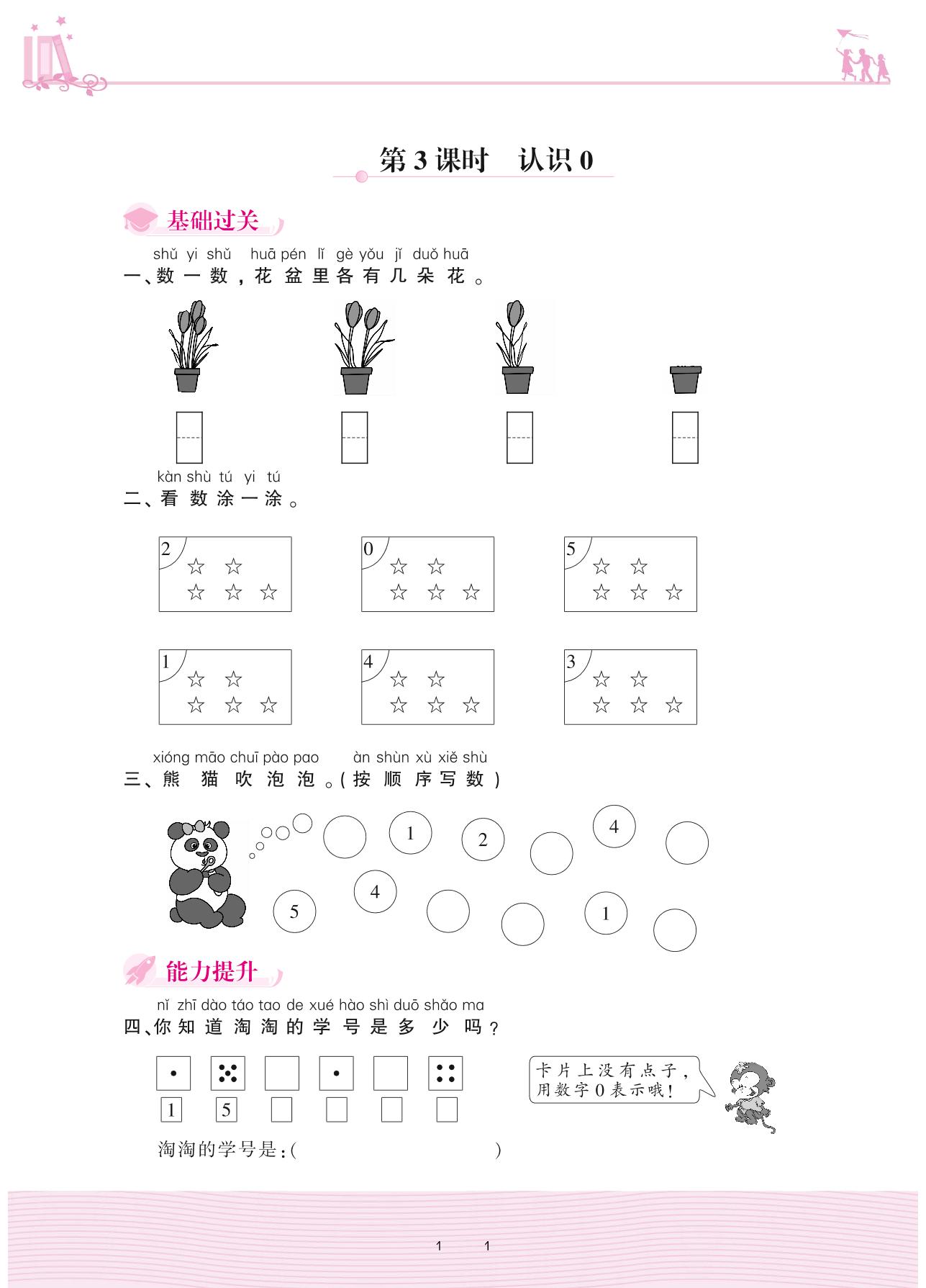 2020上册一年级数学苏教版 五 认识10以内的数——第3课时 认识0