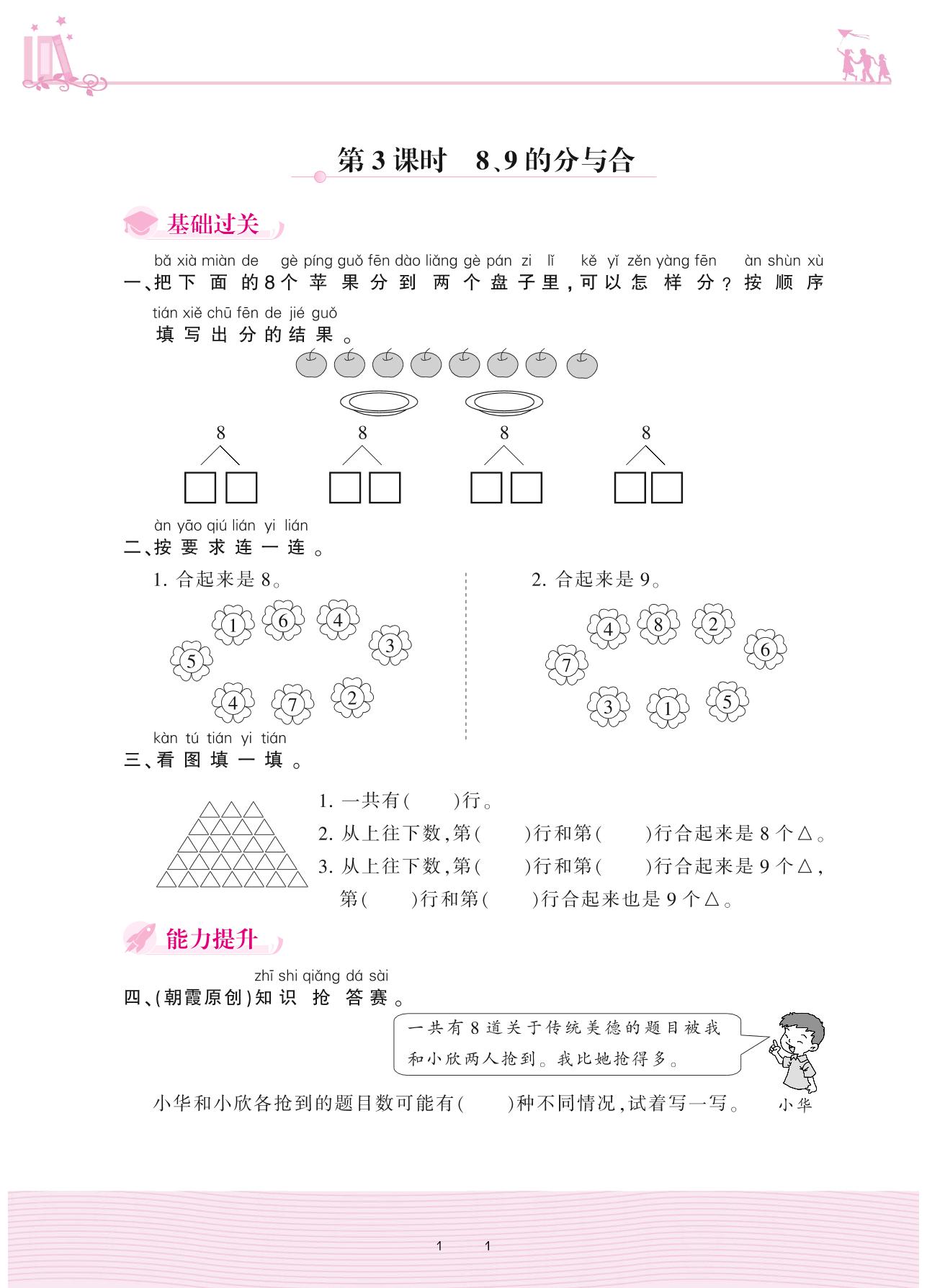 2020上册一年级数学苏教版 七 分与合——第3课时 8、9的分与合
