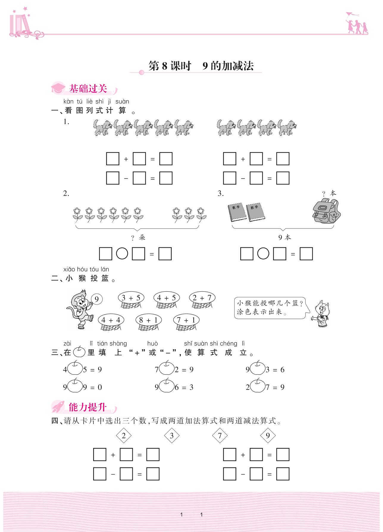 2020上册一年级数学苏教版 八 10以内的加法和减法——第8课时 9的加减法