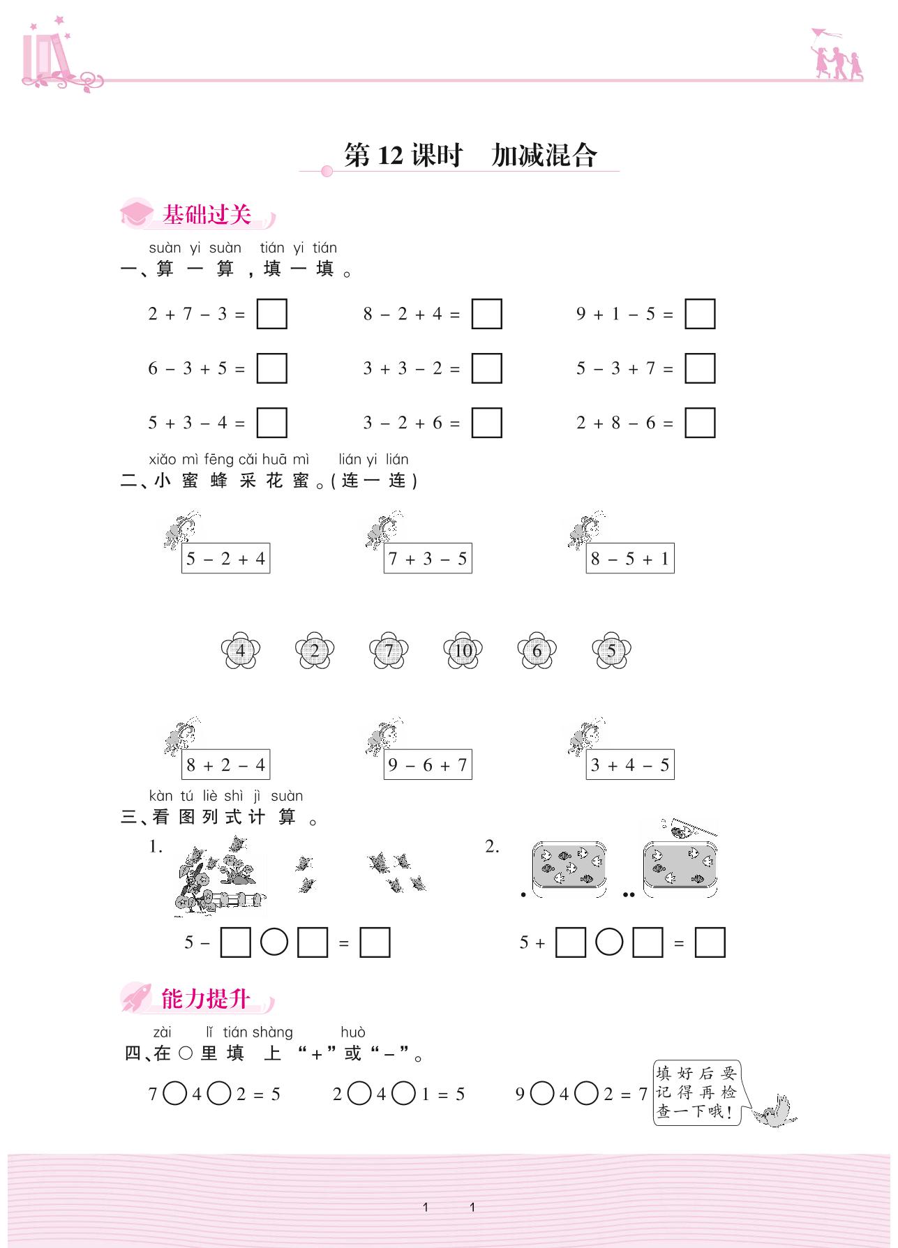 2020上册一年级数学苏教版 八 10以内的加法和减法——第12课时 加减混合