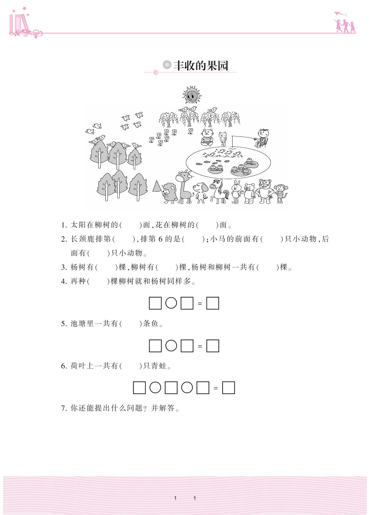 2020上册一年级数学苏教版 八 10以内的加法和减法——丰收的果园