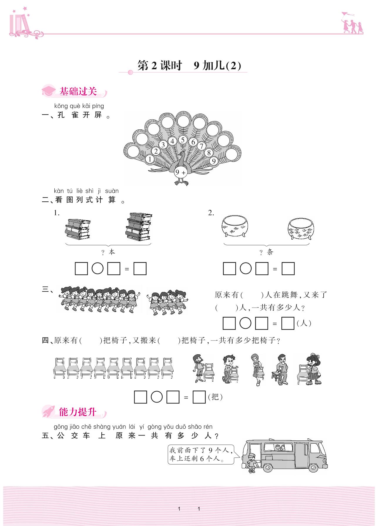 2020上册一年级数学苏教版 十 20以内的进位加法——第2课时 9加几(2)