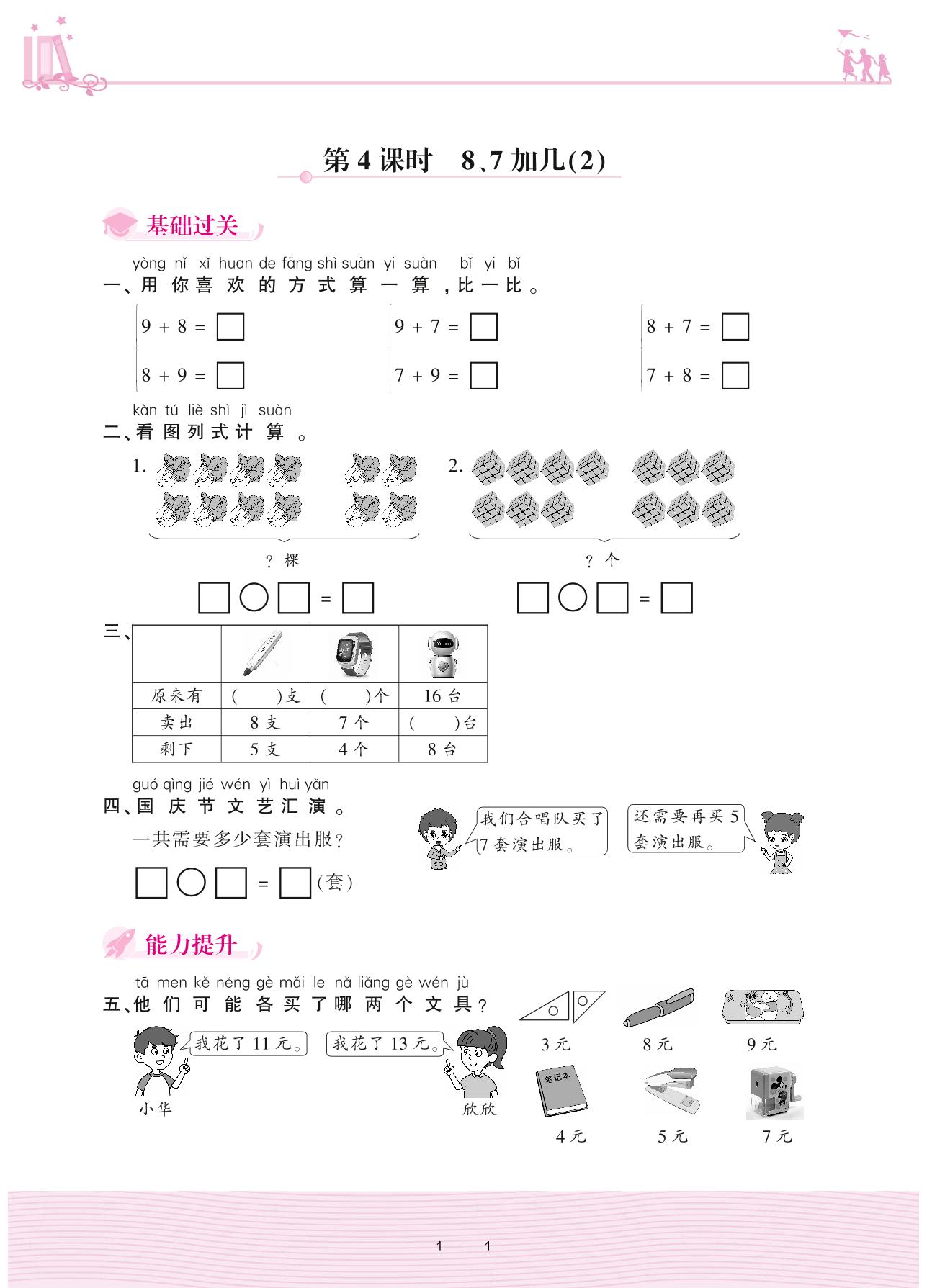 2020上册一年级数学苏教版 十 20以内的进位加法——第4课时 8、7加几(2)