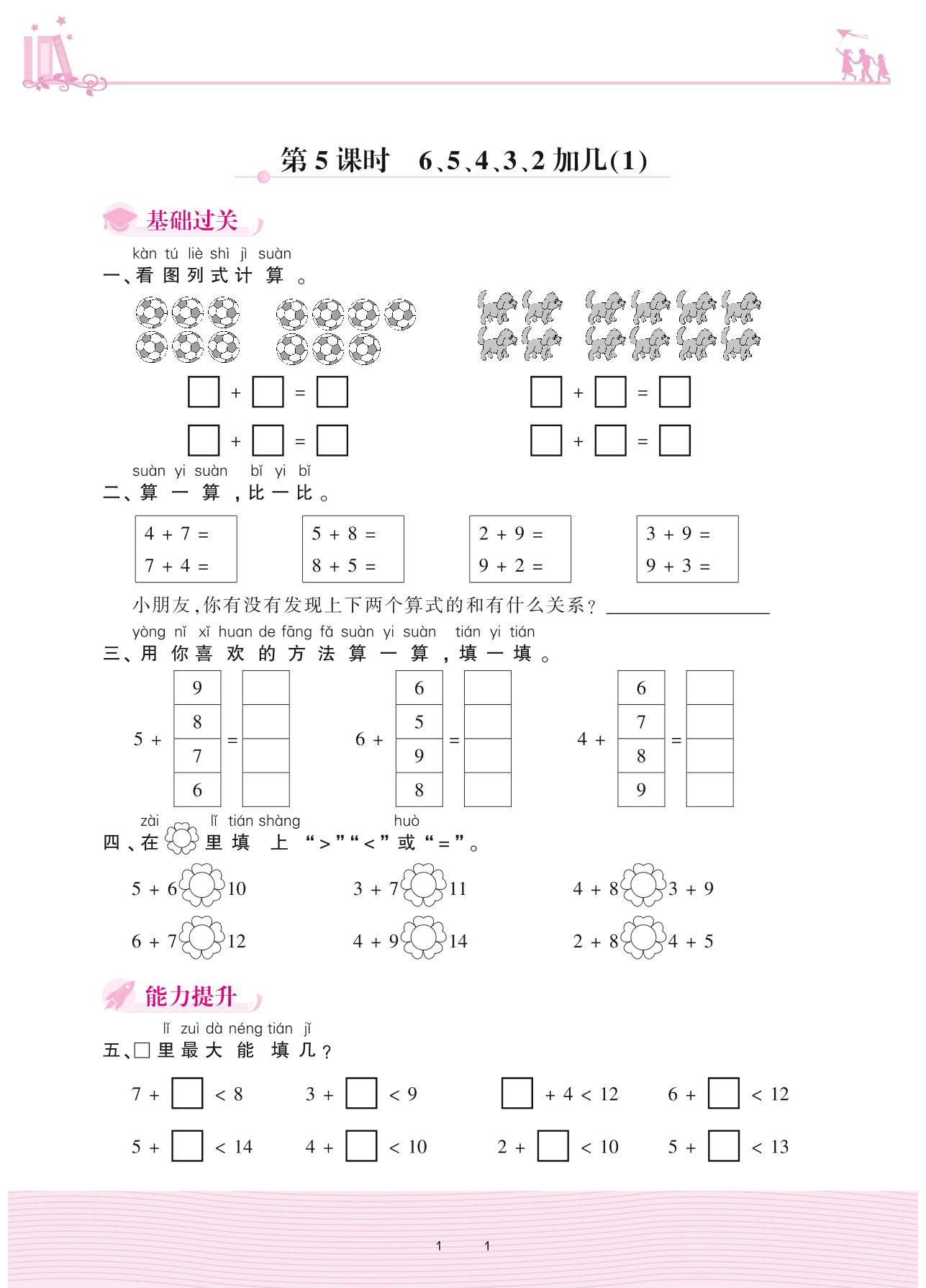2020上册一年级数学苏教版 十 20以内的进位加法——第5课时 6、5、4、3、2加几(1)