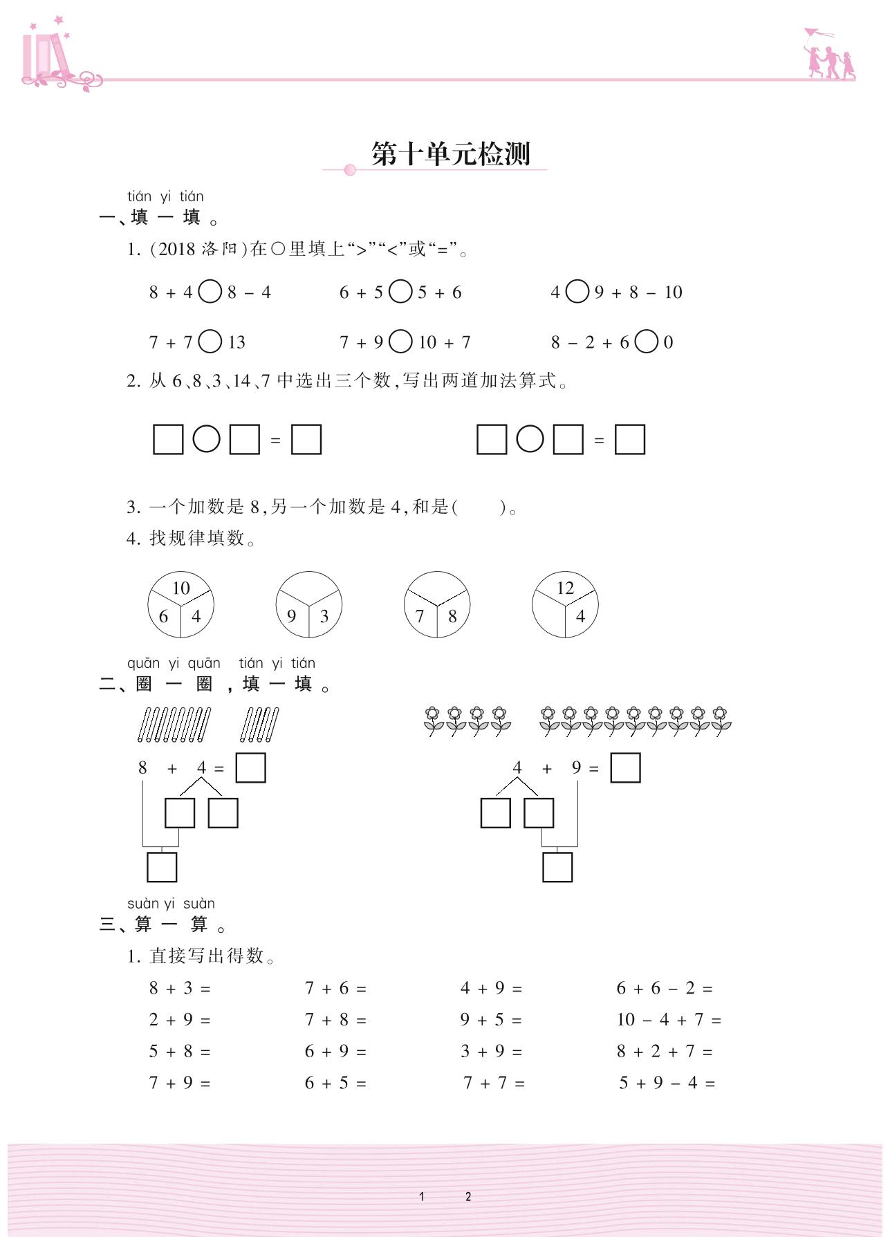 2020上册一年级数学苏教版 第十单元检测