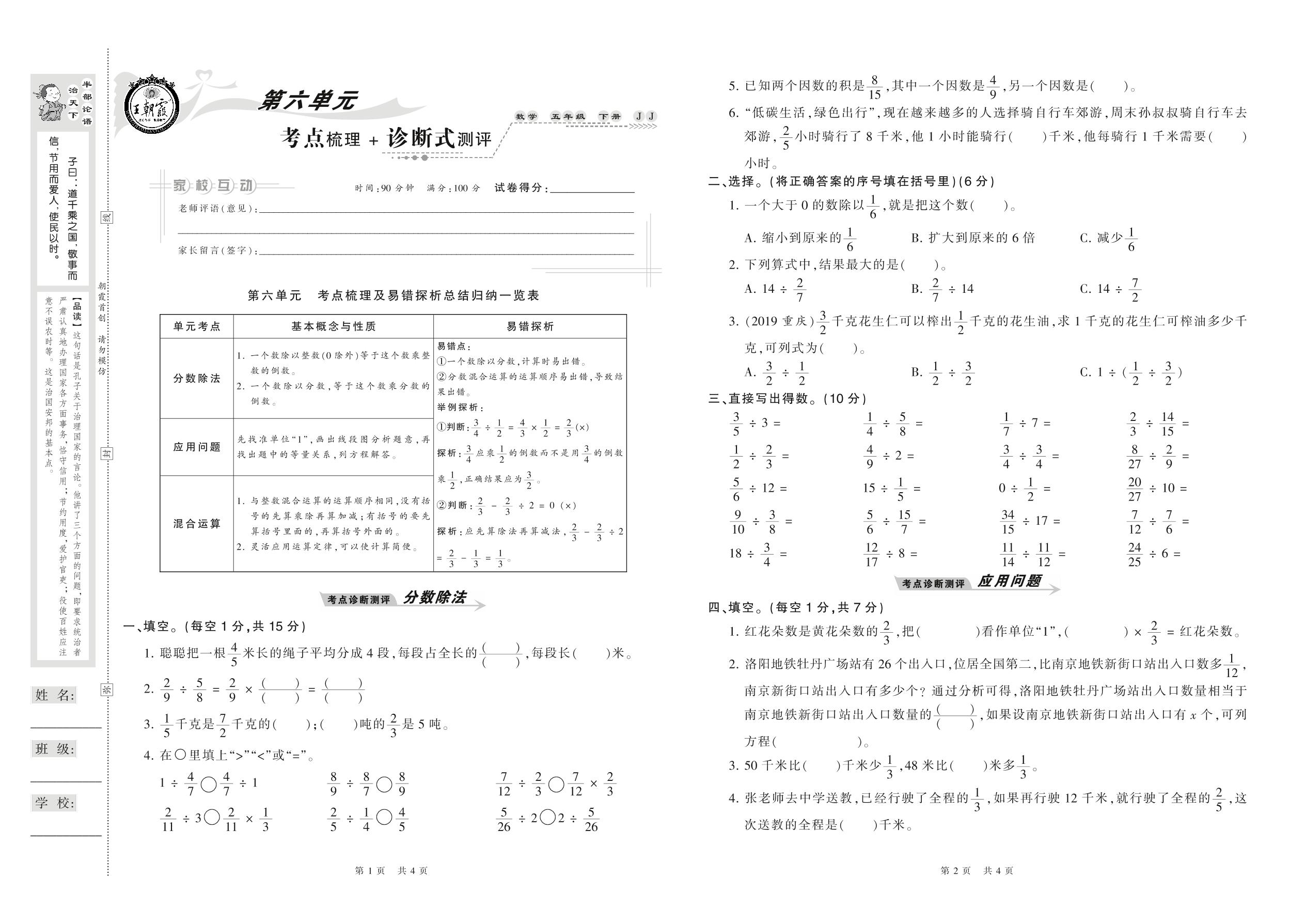 2021下册五年级数学冀教版 第六单元 考点梳理+诊断式测评