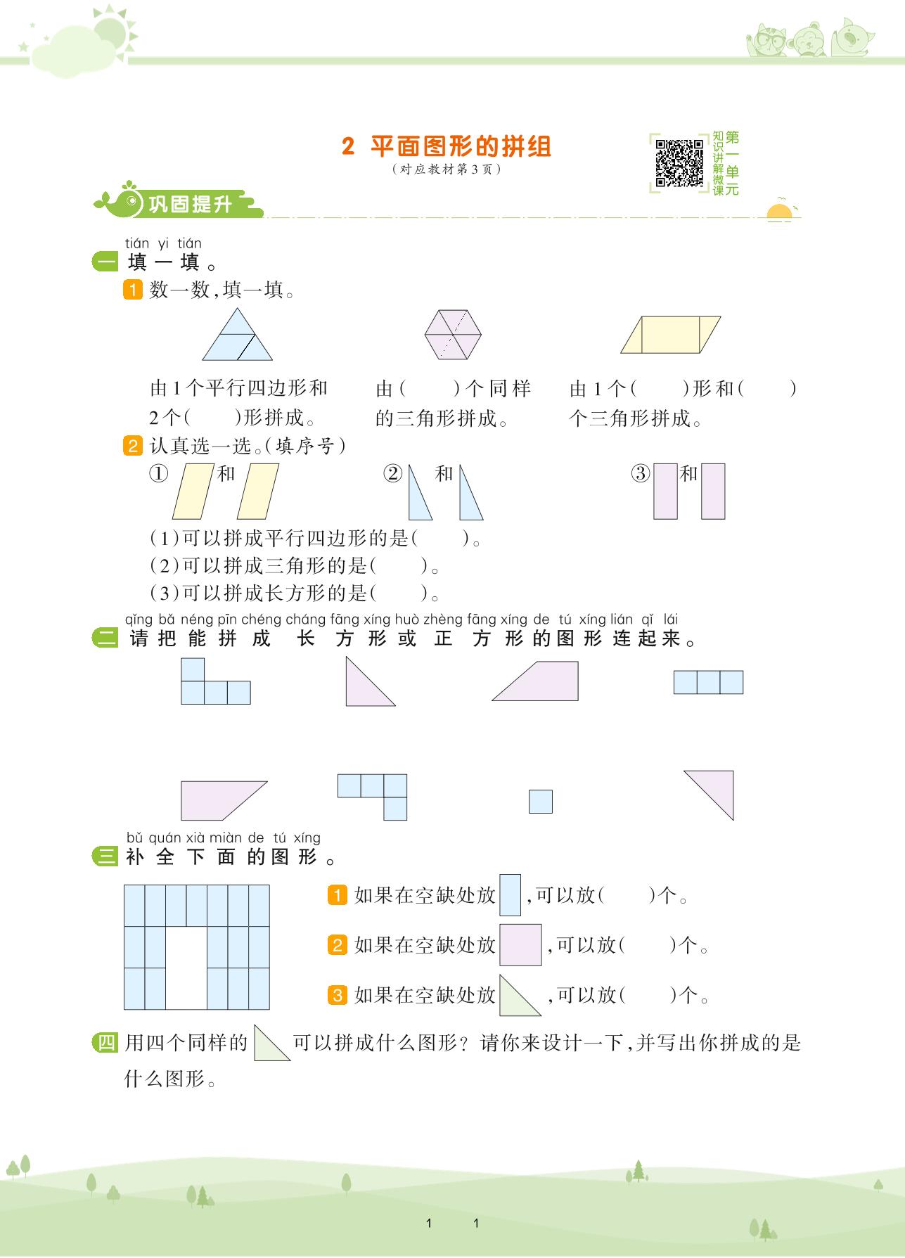 2021下册一年级数学人教版 第一单元 认识图形(二)——2 平面图形的拼组