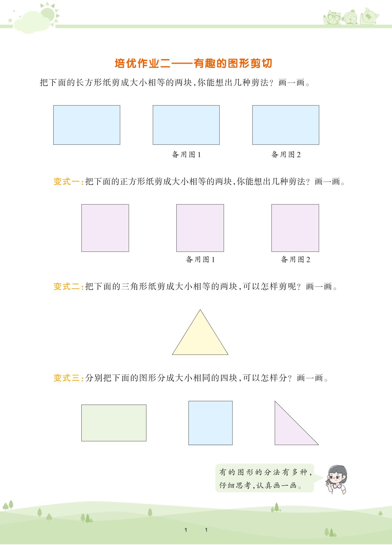 2021下册一年级数学人教版 第一单元 认识图形(二)——培优作业二 有趣的图形剪切