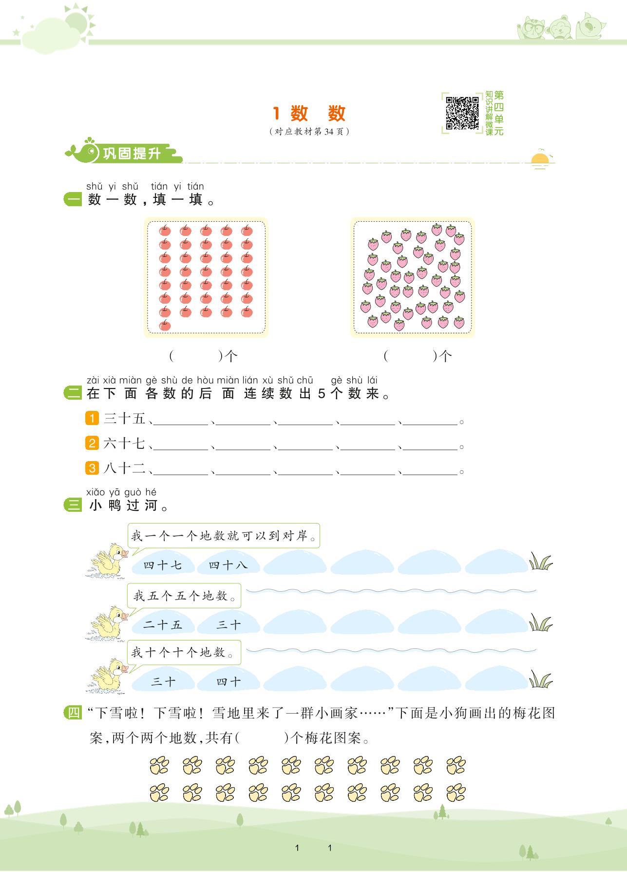 2021下册一年级数学人教版 第四单元 100以内数的认识——1 数数
