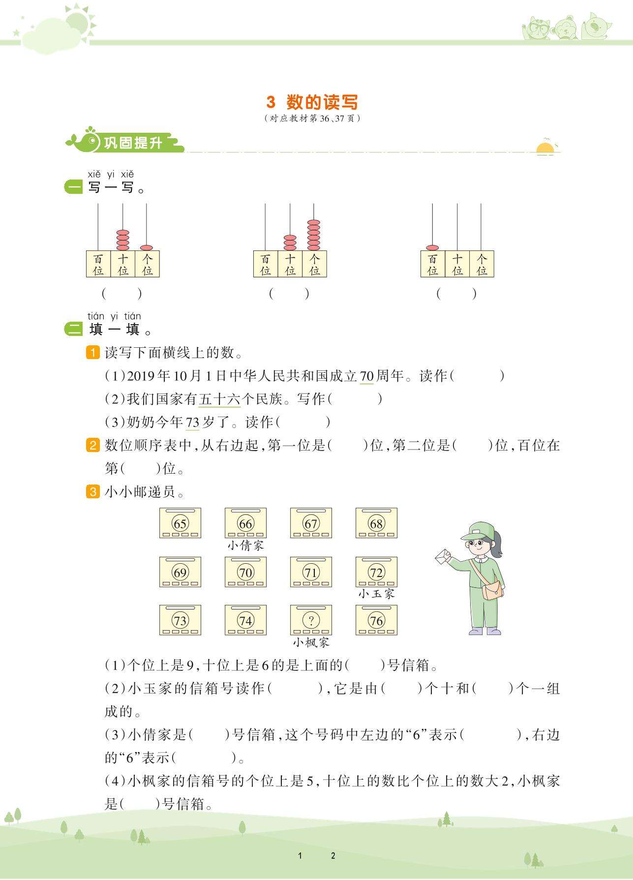2021下册一年级数学人教版 第四单元 100以内数的认识——3 数的读写