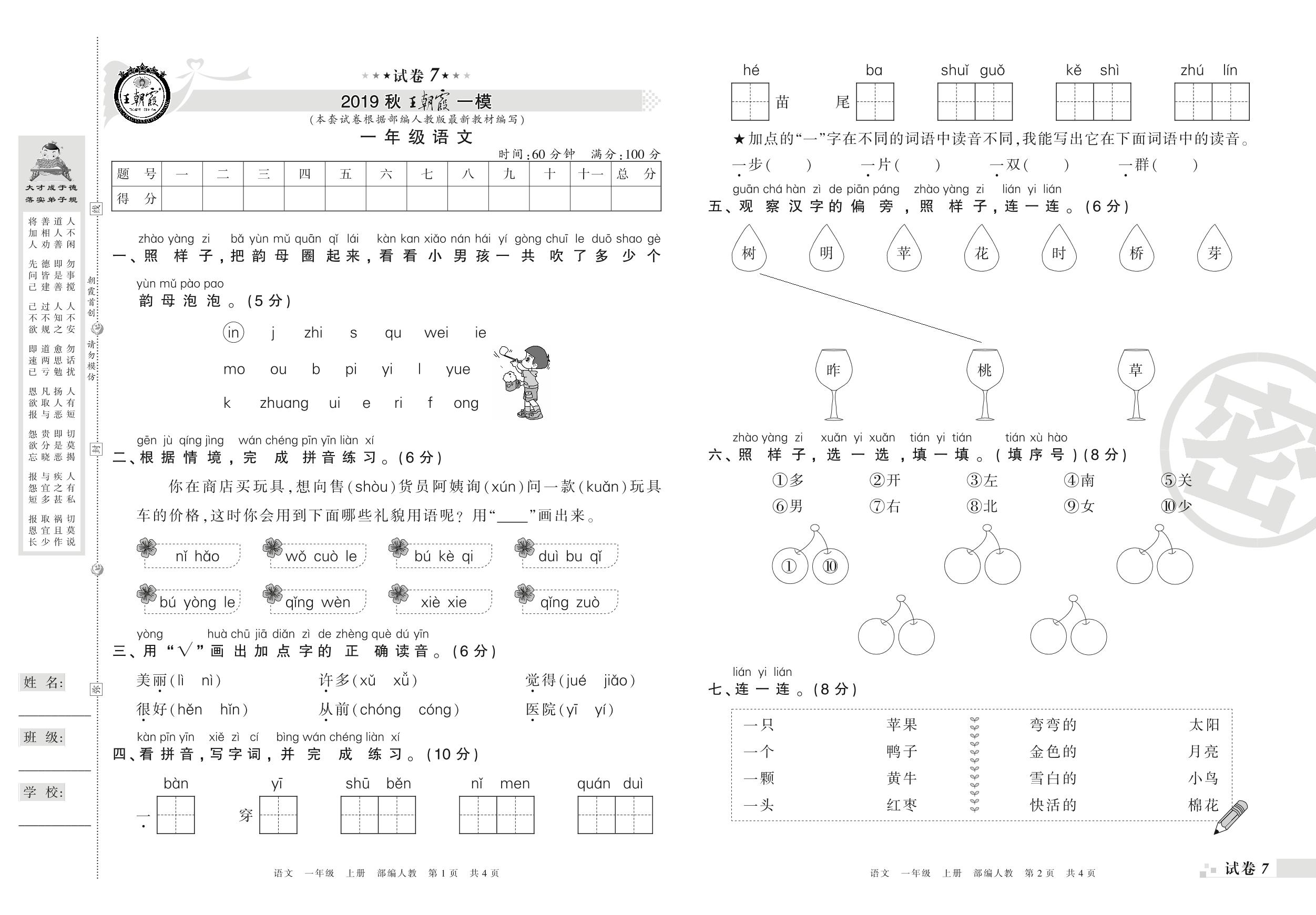 王朝霞期末模拟卷一年级上册语文(人教版)_R210731180800【7】