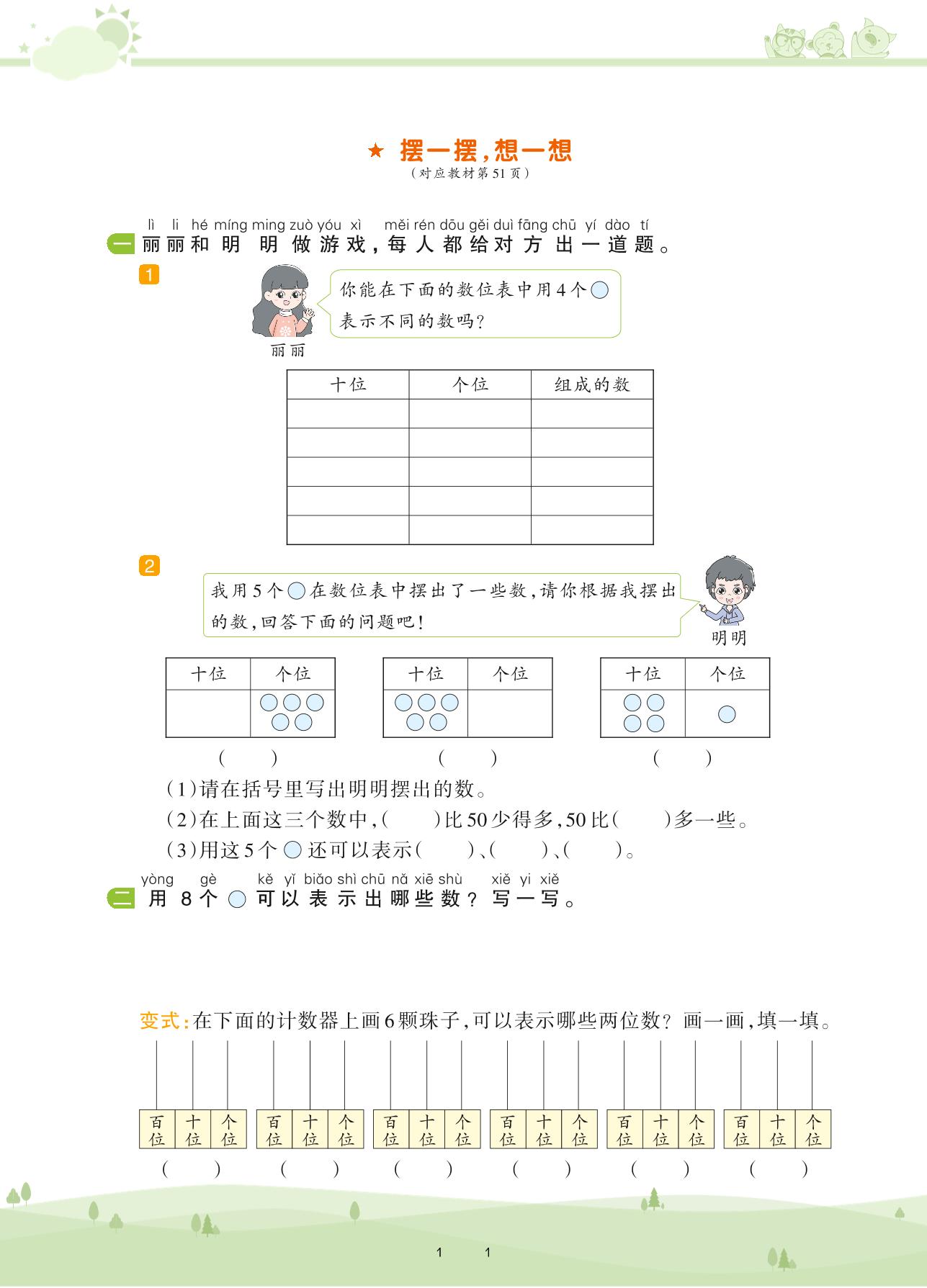 2021下册一年级数学人教版 第四单元 100以内数的认识——摆一摆,想一想