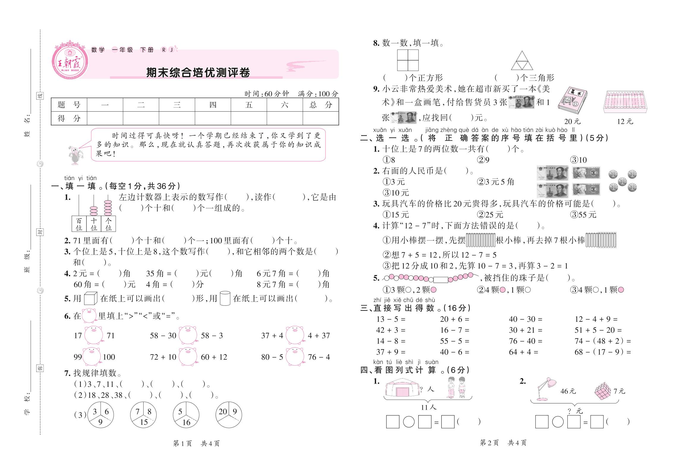 一年级数学人教版下册期末卷