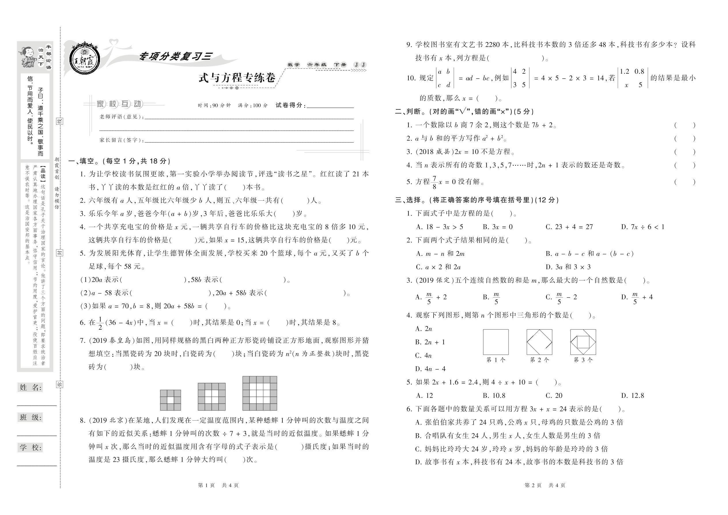 2021下册六年级数学冀教版 式与方程专练卷