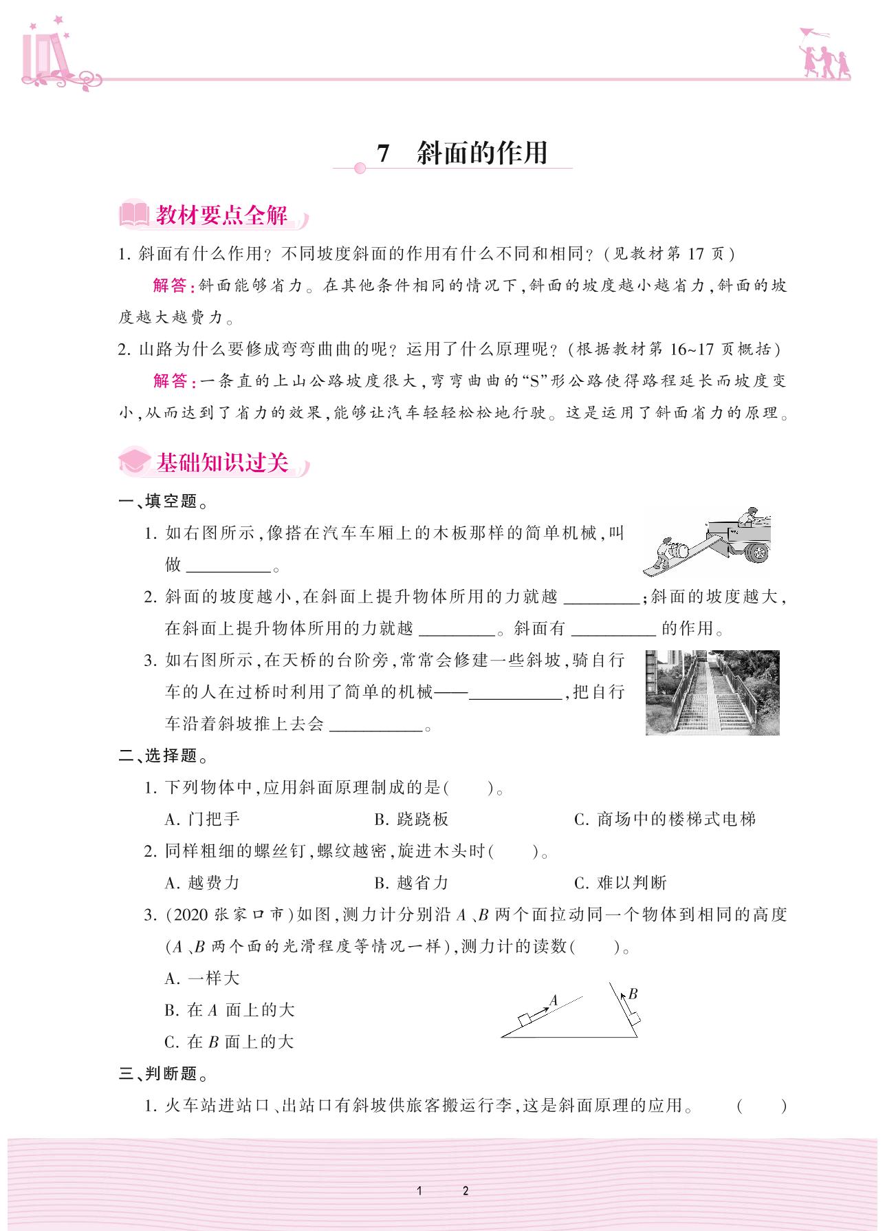 2020上册六年级科学教科版 第一单元 工具和机械——7 斜面的作用