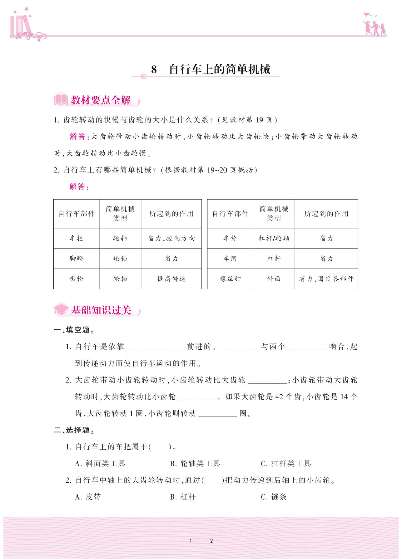 2020上册六年级科学教科版 第一单元 工具和机械——8 自行车上的简单机械