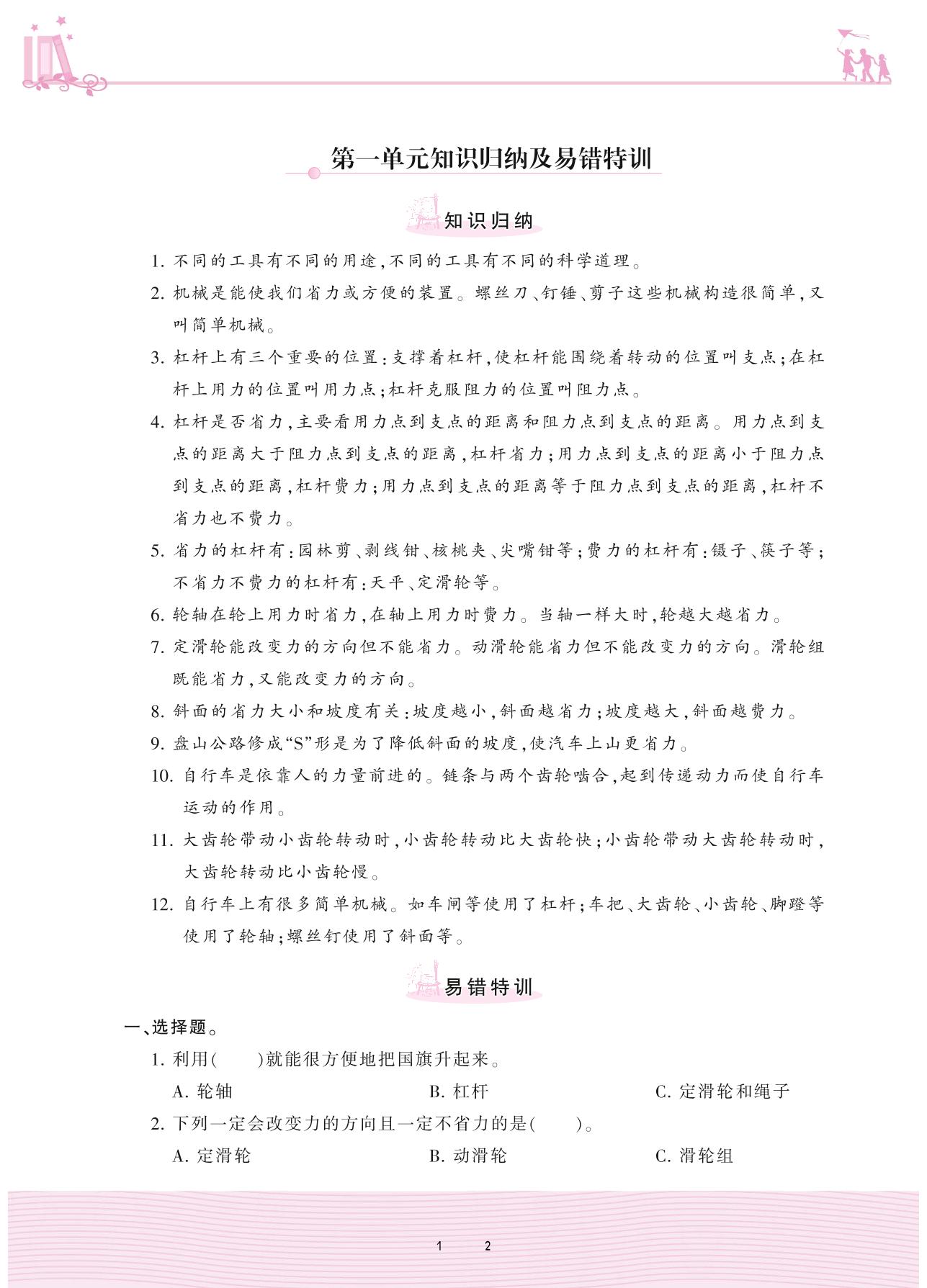 2020上册六年级科学教科版 第一单元知识归纳及易错特训