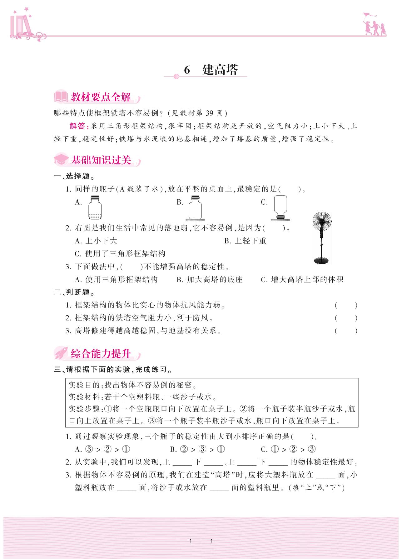 2020上册六年级科学教科版 第二单元 形状与结构——6 建高塔