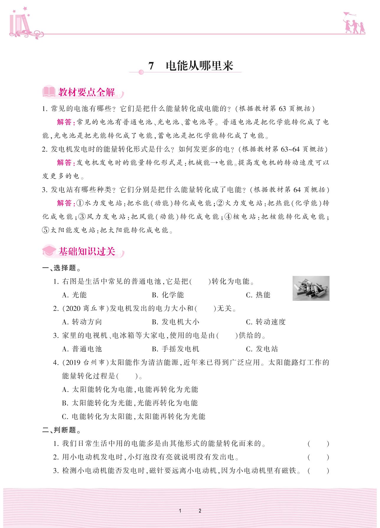 2020上册六年级科学教科版 第三单元 能量——7 电能从哪里来