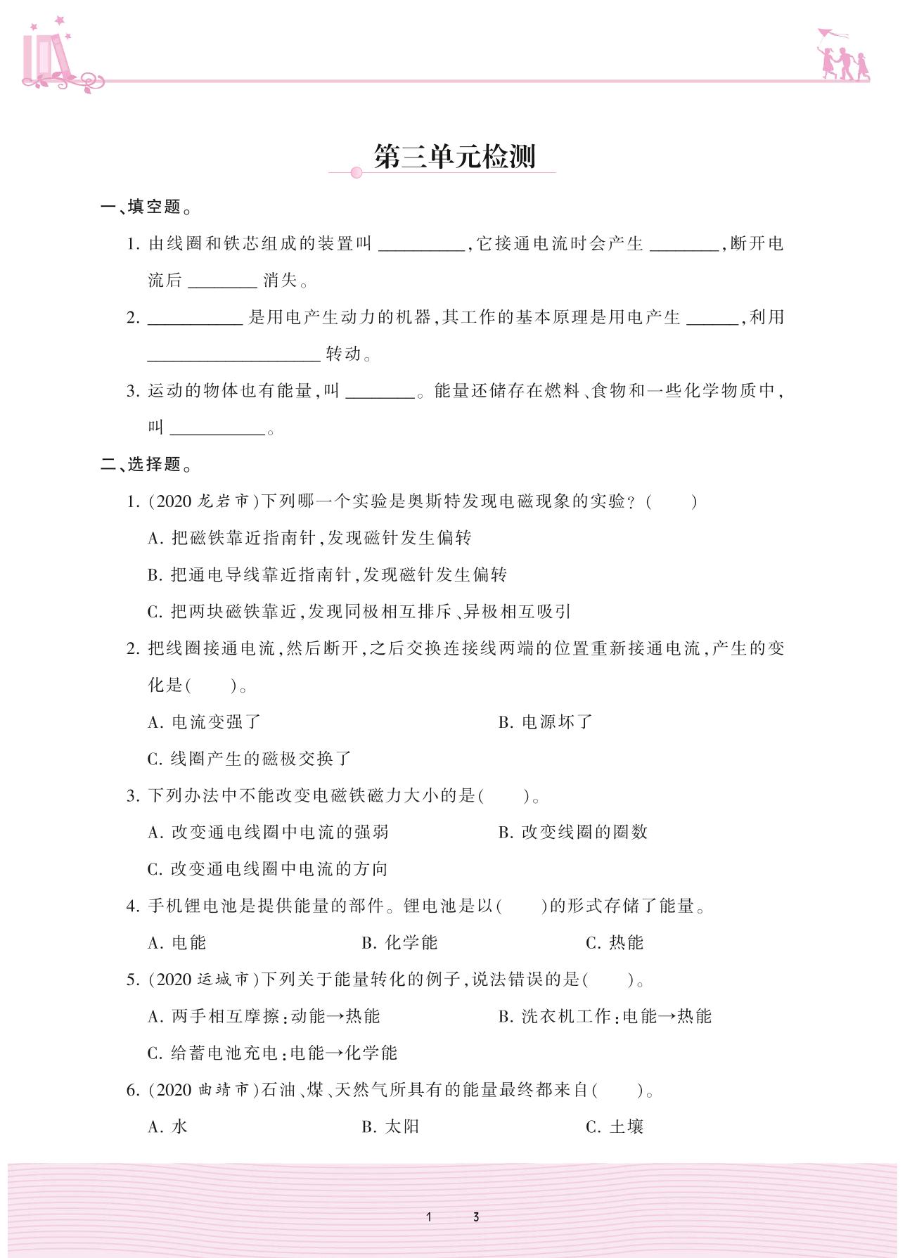 2020上册六年级科学教科版 第三单元检测