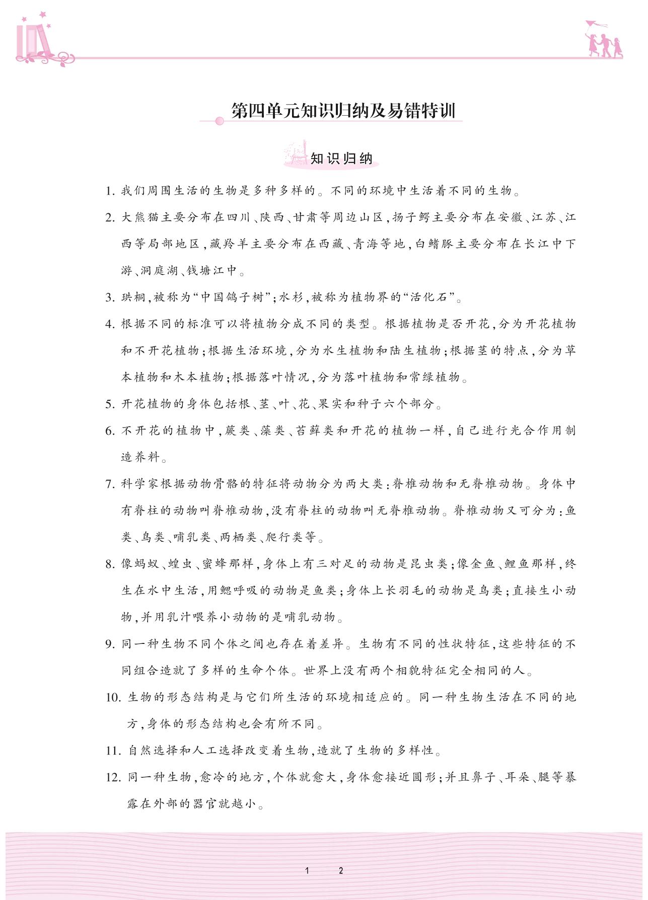 2020上册六年级科学教科版 第四单元知识归纳及易错特训